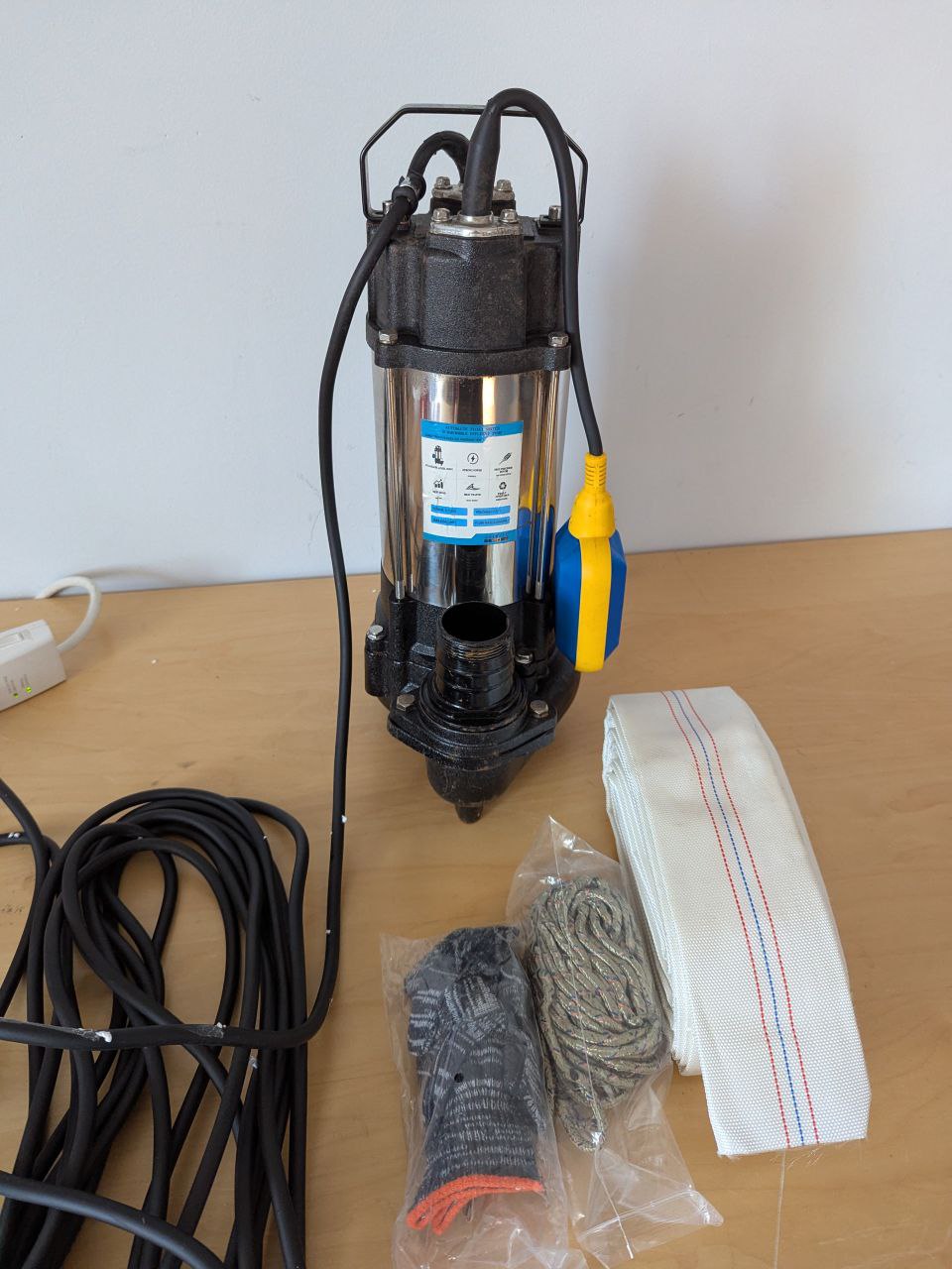 ✅ Easy Installation & Handling: Comes with a 2'' NPT discharge, hose adapter, lifting rope, and tools for seamless setup. The top handle allows secure attachment of a rope for submerging or lifting.