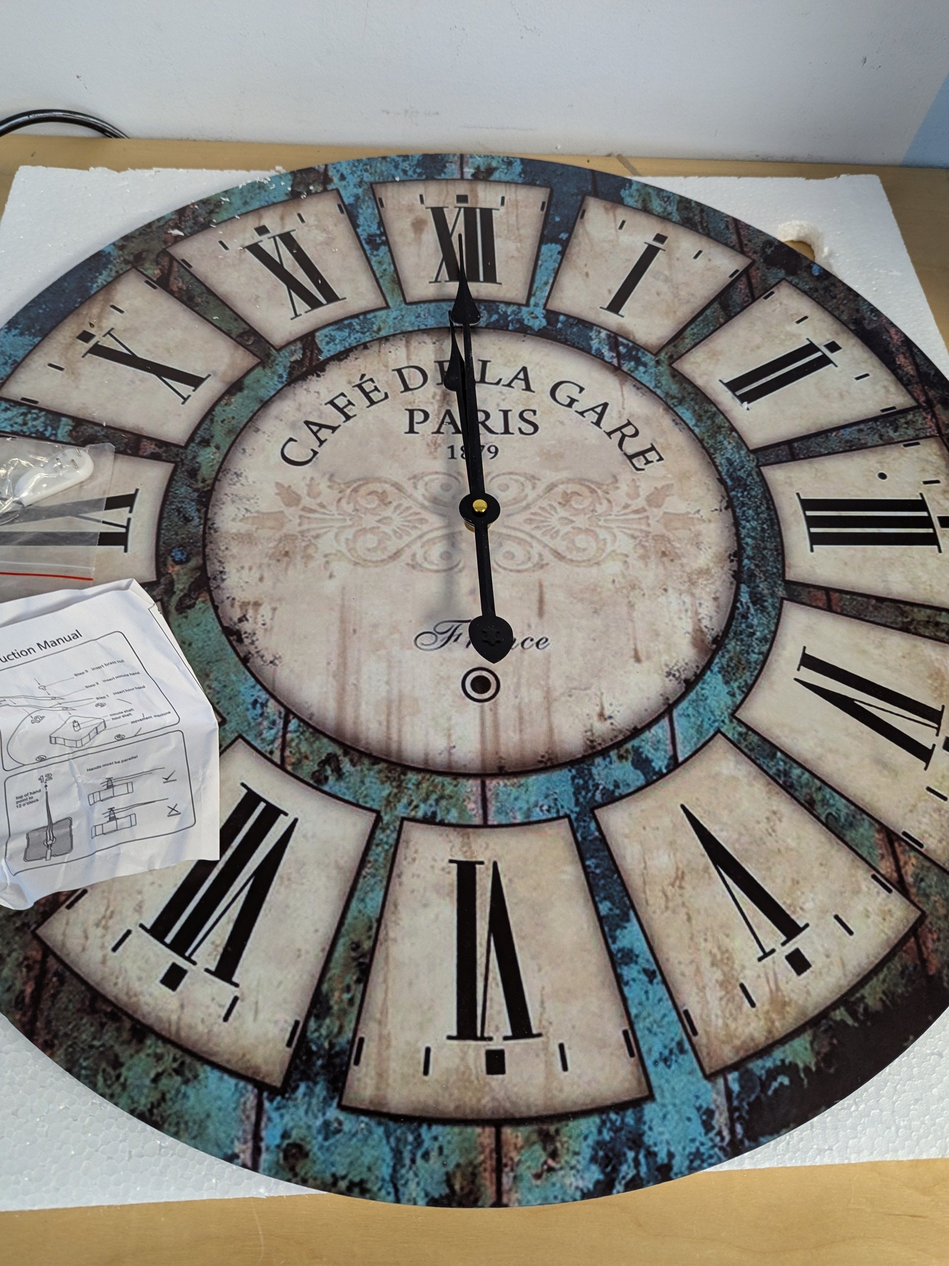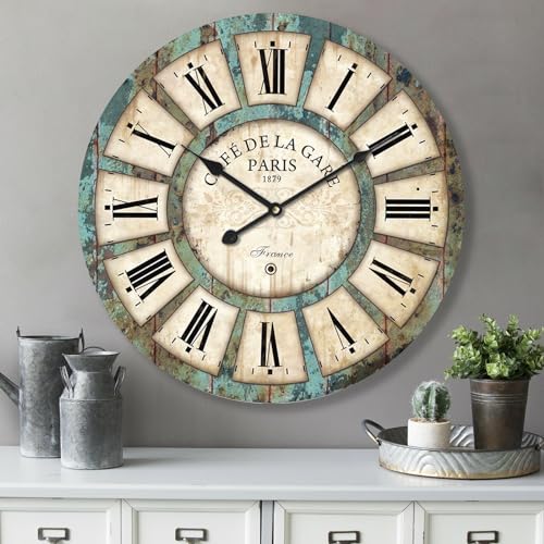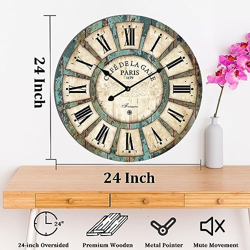 Elevate your space with the Eruner 24 Inch Vintage Wall Clock. This large oversized farmhouse-style wall clock features a classic round shape with Roman numerals, offering legible time reading from any angle. The non-ticking movement ensures silent operation, making it ideal for bedrooms, living rooms, or kitchens.