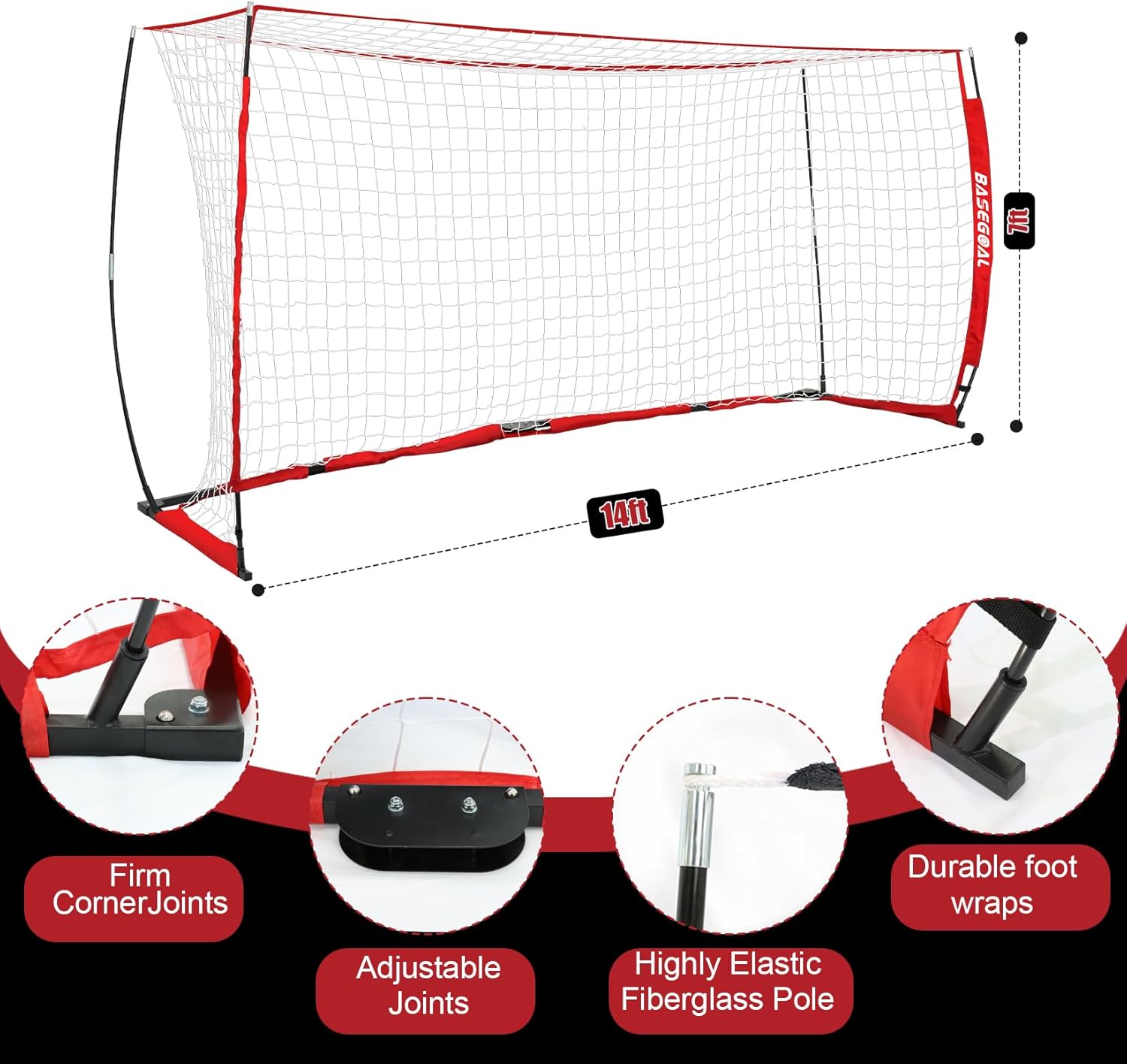 8x6FT BaseGoal Soccer Goal,Soccer Net,Soccer Goals for Backyard,with Bow Frame,C