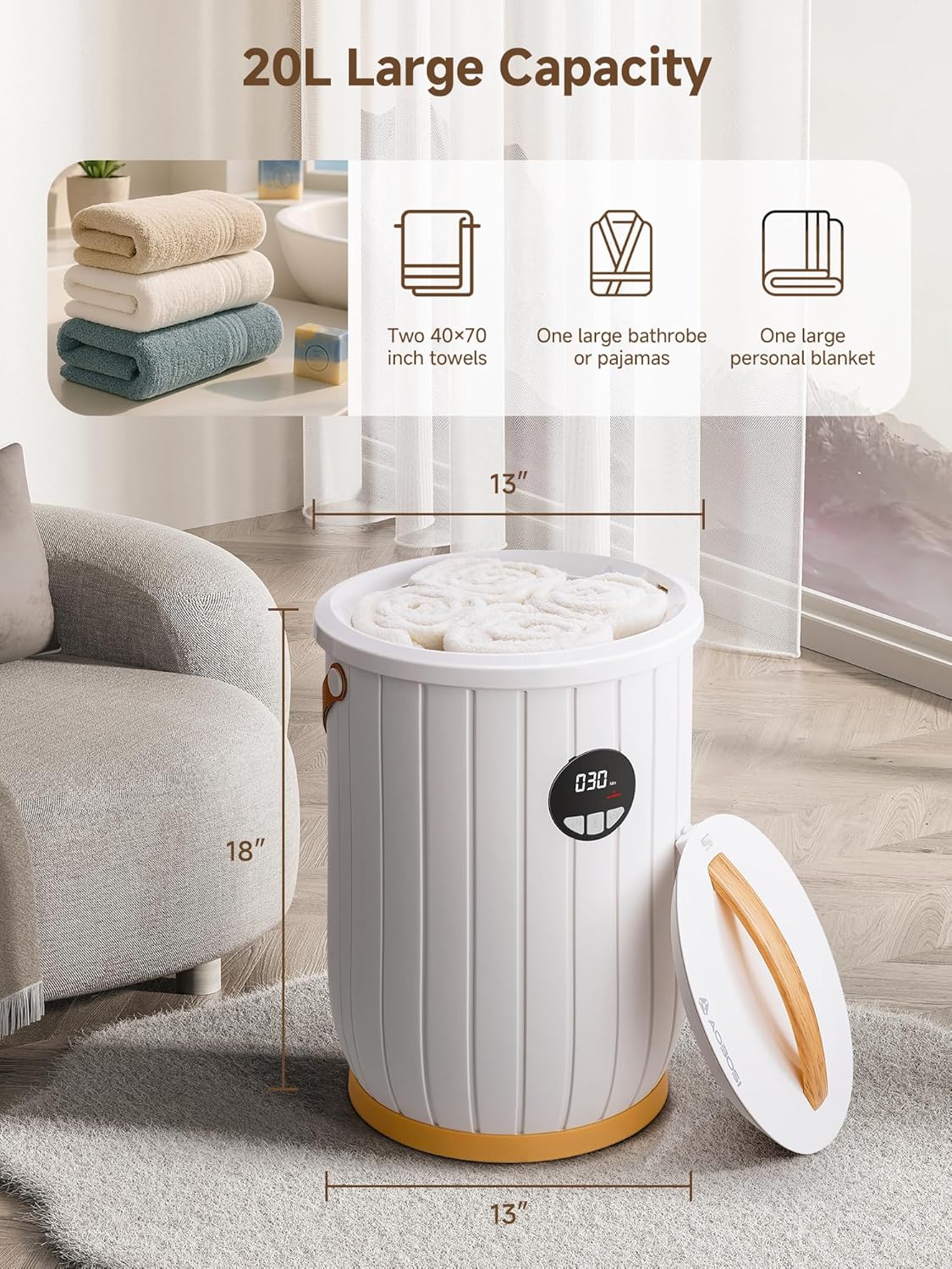 AAOBOSI 20L Towel Warmer for Bathroom - Heated Towel Warmers Bucket, Fits Up to