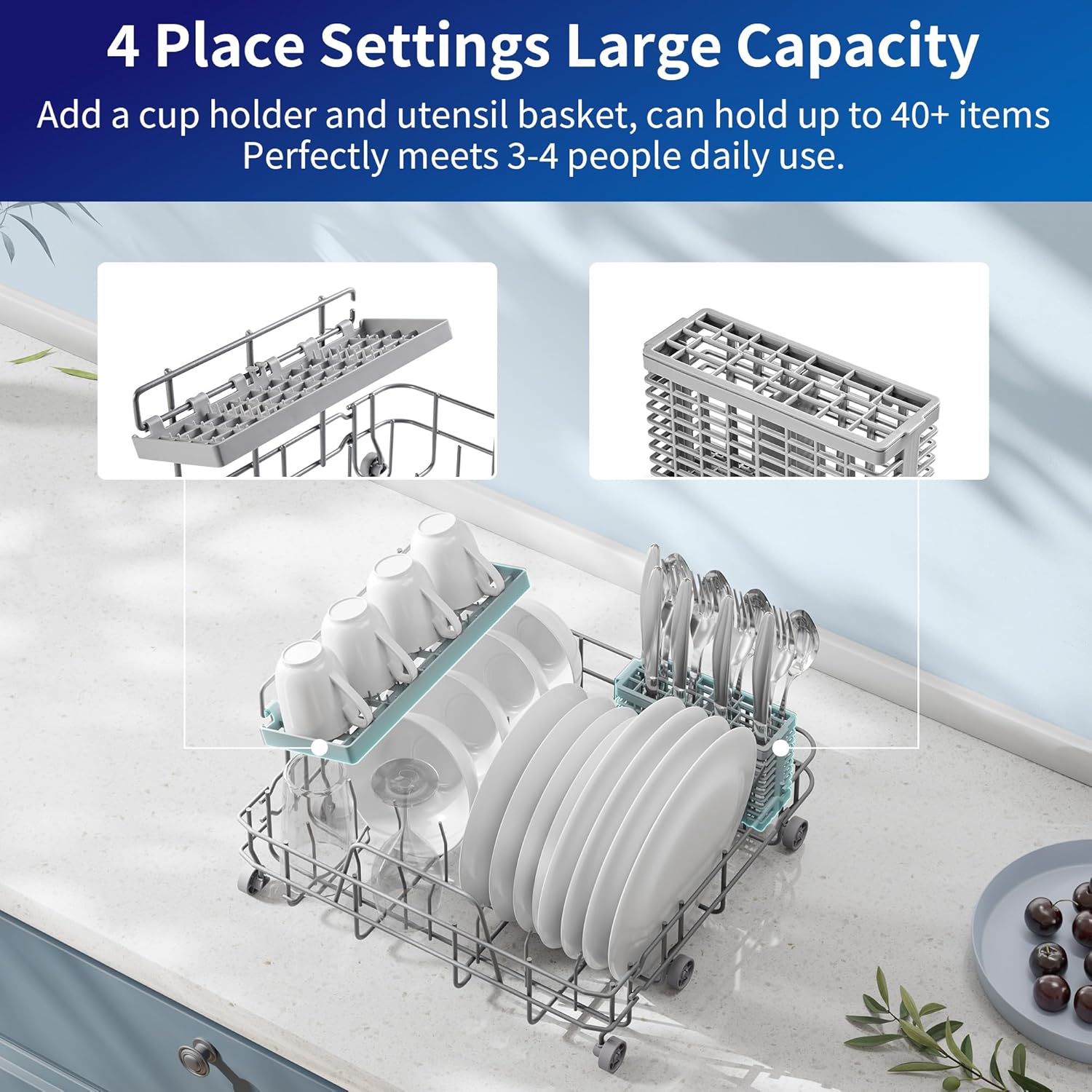✅ Versatile Storage: Holds up to 4 standard place settings with a dish rack, cup shelf, cutlery basket, and fruit basket