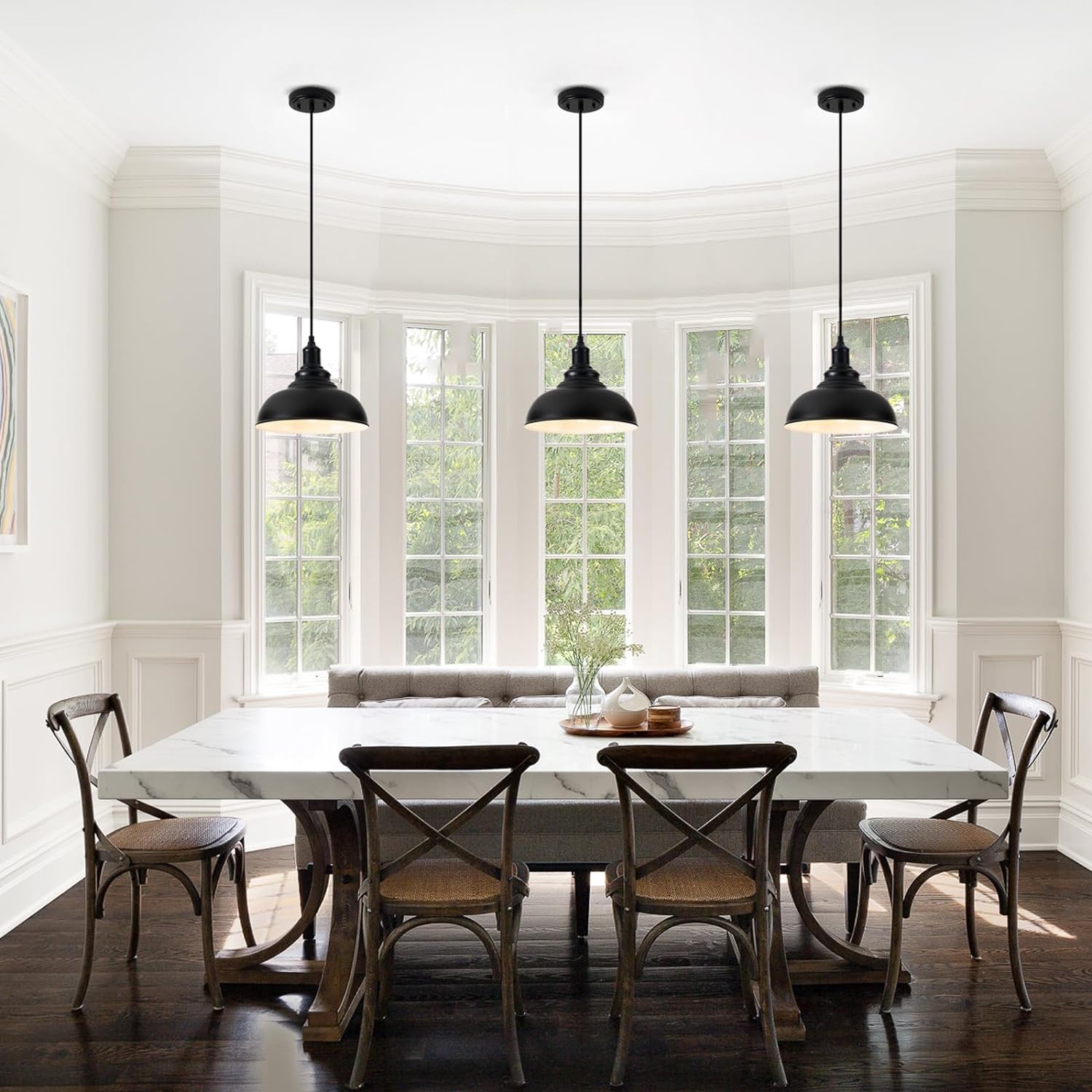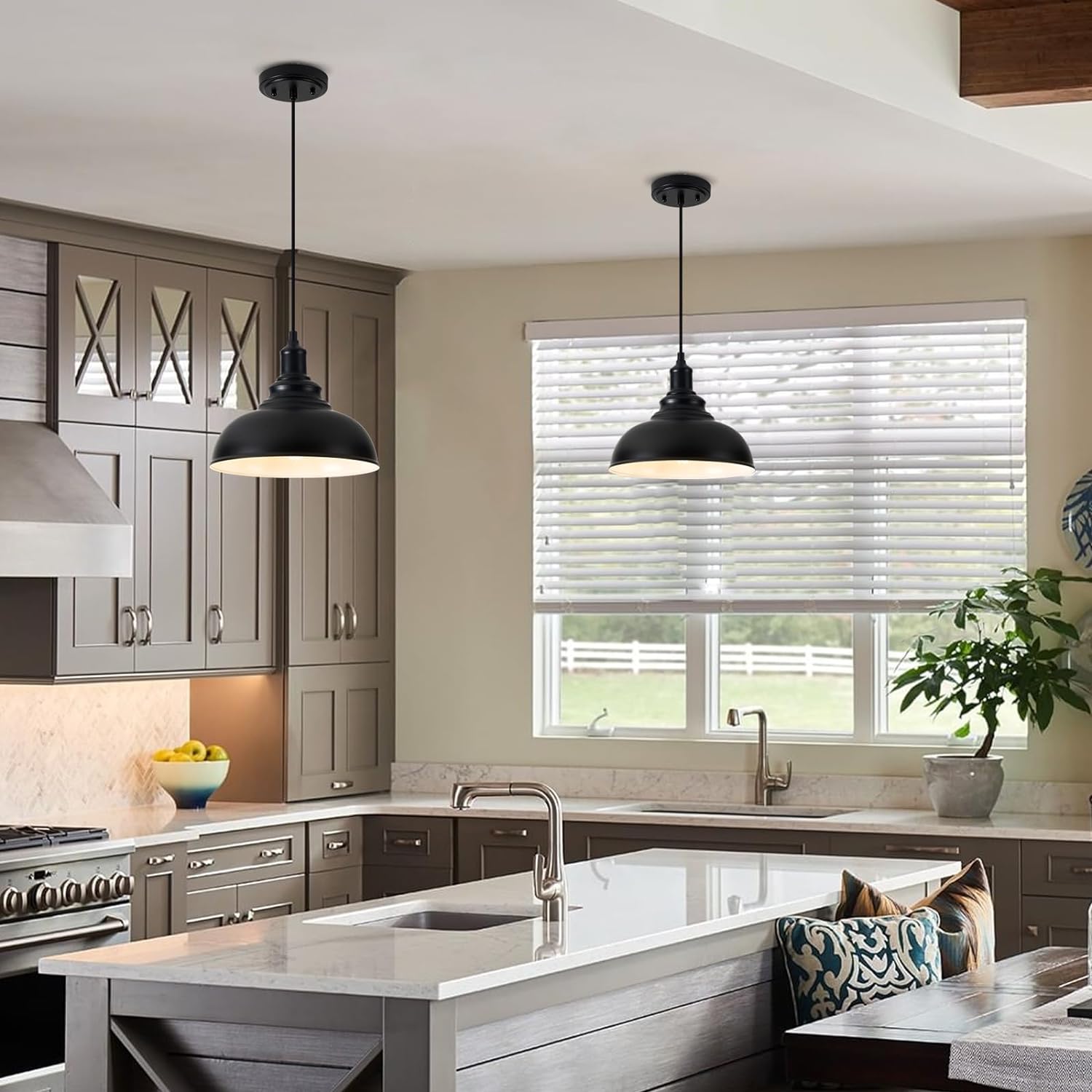 Elevate your kitchen with the ALAISLYC 3 Pack Farmhouse Pendant Light in Black. This industrial-style pendant light combines rustic charm with modern functionality, making it a perfect fit for kitchens, dining rooms, and more.