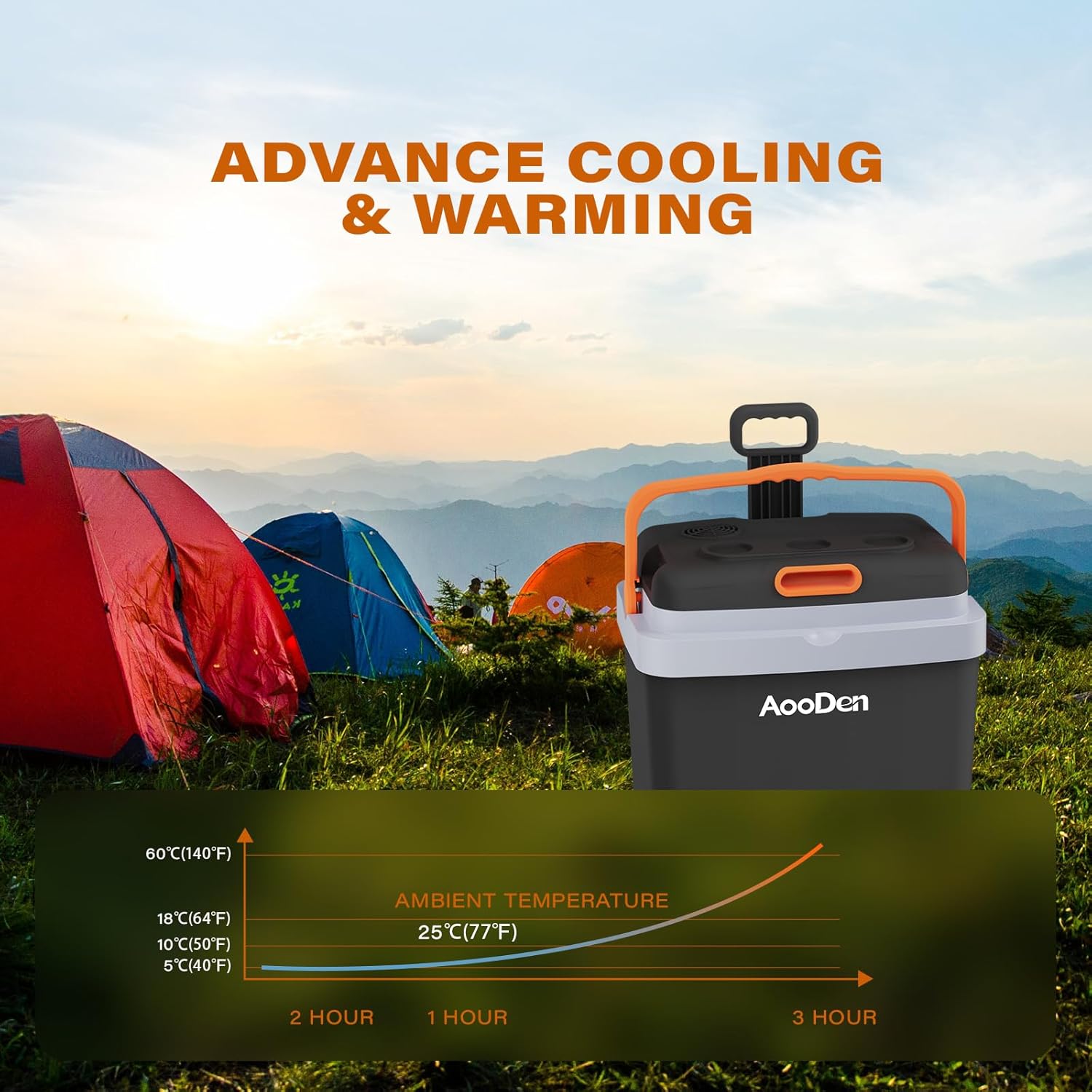 Travel smarter with the AooDen 35 Quart Electric Cooler and Warmer in Black. Designed for versatility and performance, this portable cooler is perfect for keeping drinks and food at the ideal temperature during travel, camping, or outdoor adventures.