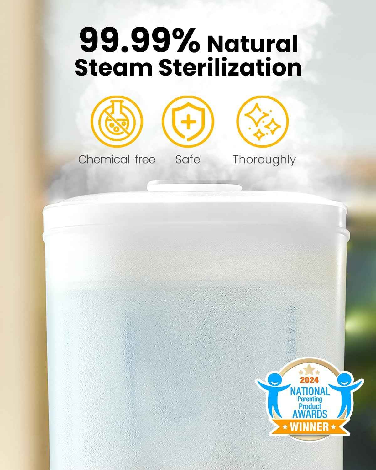 ✅ Hospital-Grade 212°F Steam Sterilization: Achieves 99.99% sterilization efficacy with penetrating steam for a safe feeding environment