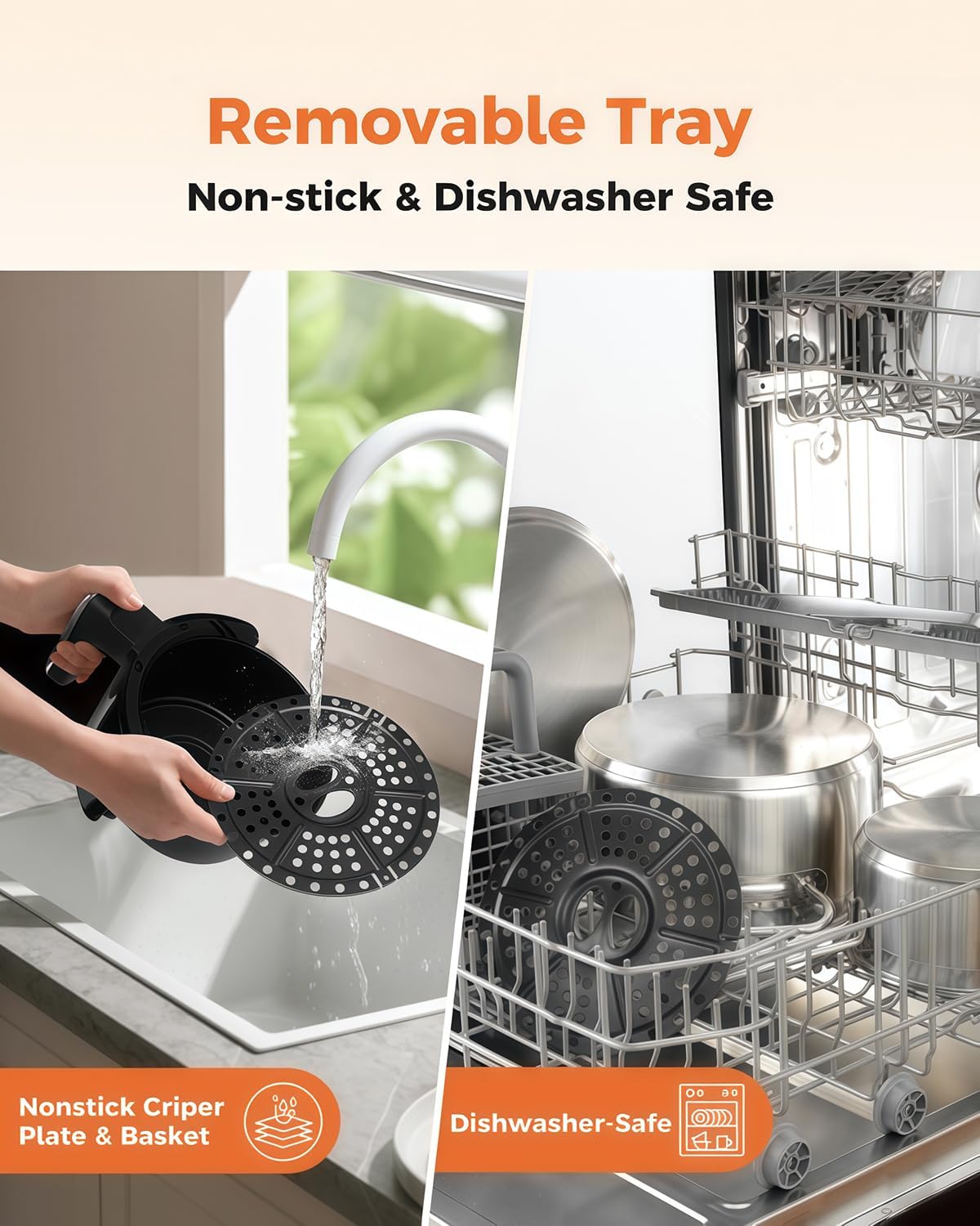 ✅ Easy to Clean: Nonstick basket and dishwasher-safe tray make cleanup effortless with mild soap and water.