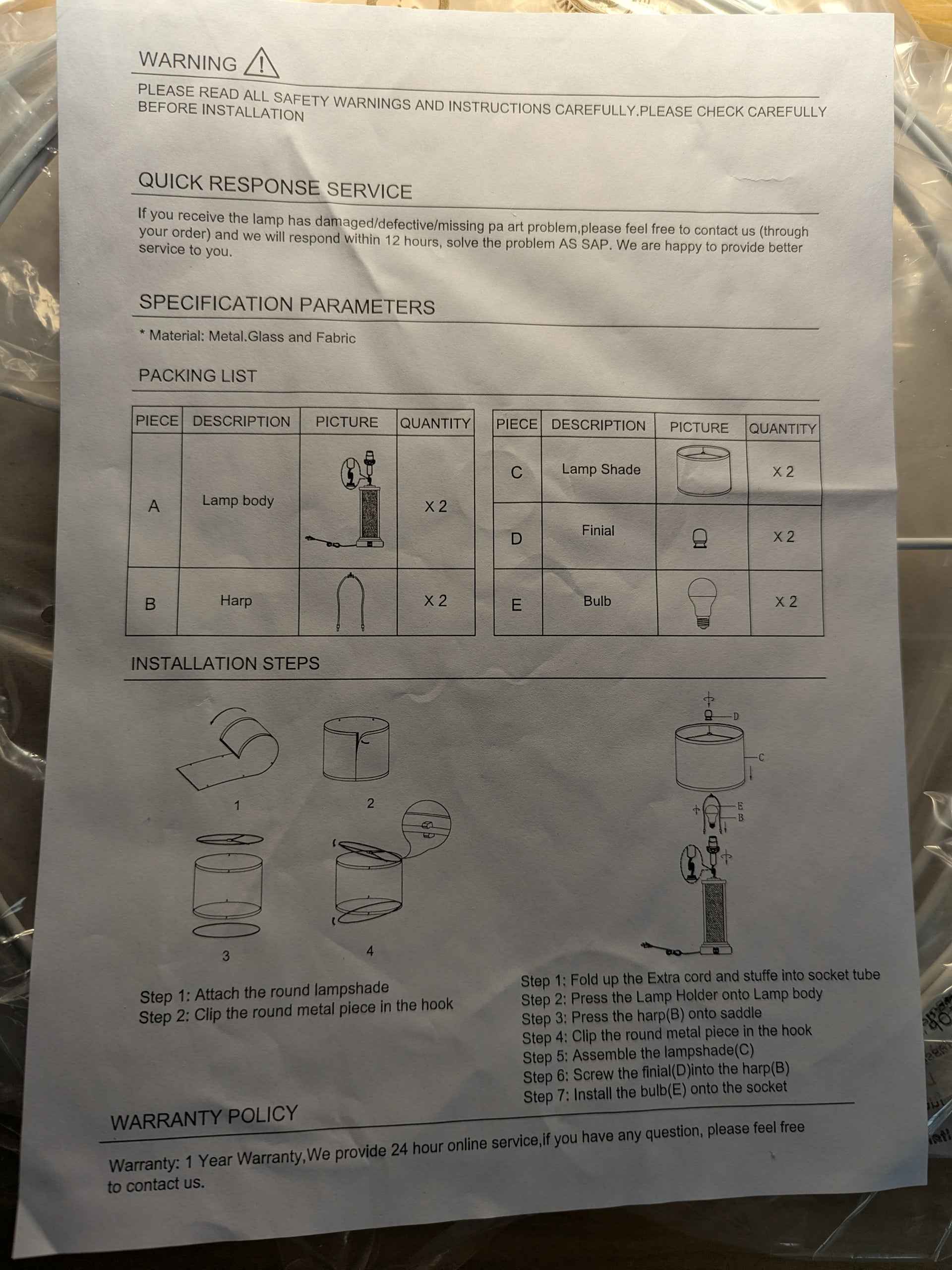 • Included: 4 LED bulbs (2 main + 2 night light), easy assembly instructions
