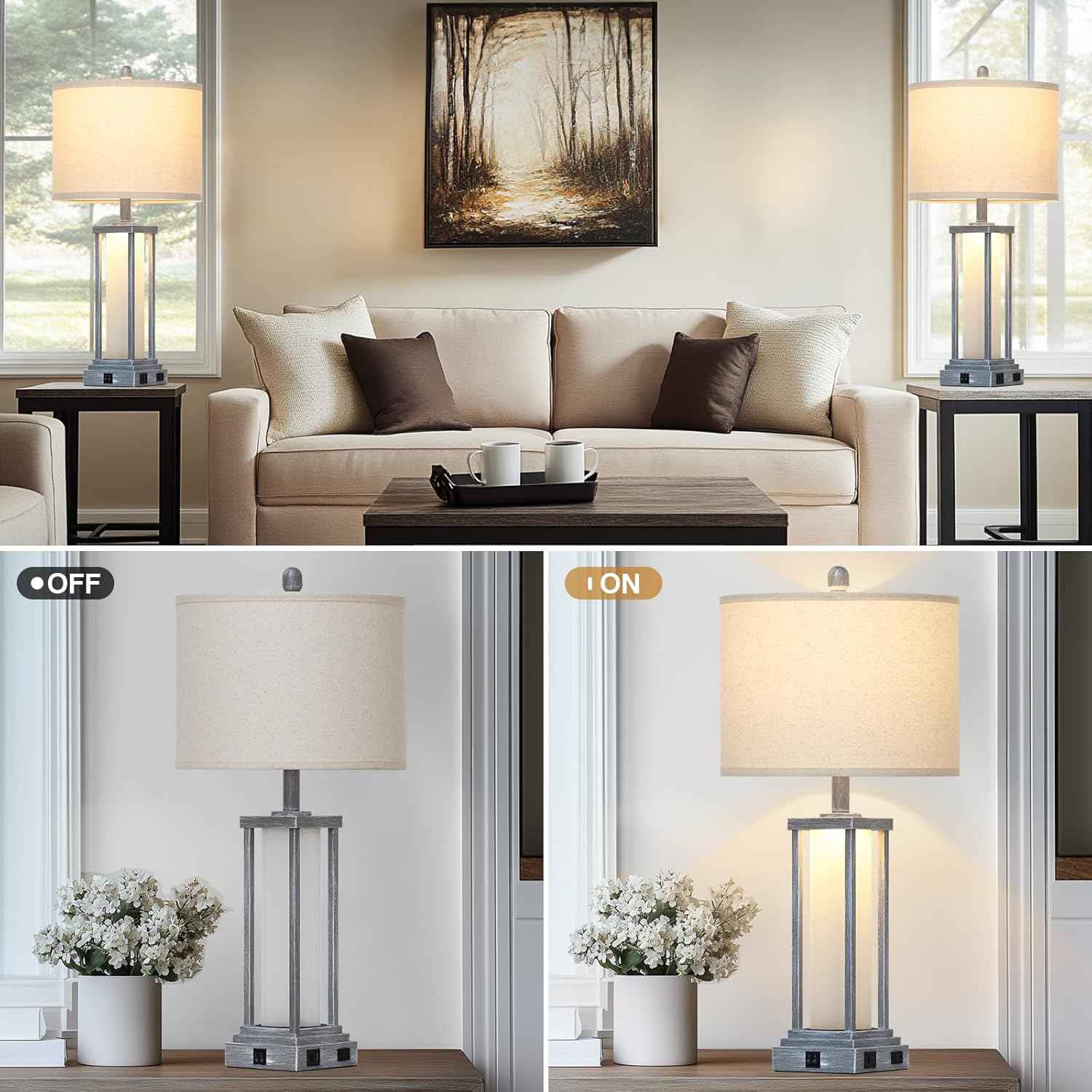 ✅ Eye-Caring LED Lighting: Linen shade diffuses light softly, reducing eye strain for comfortable ambient glow