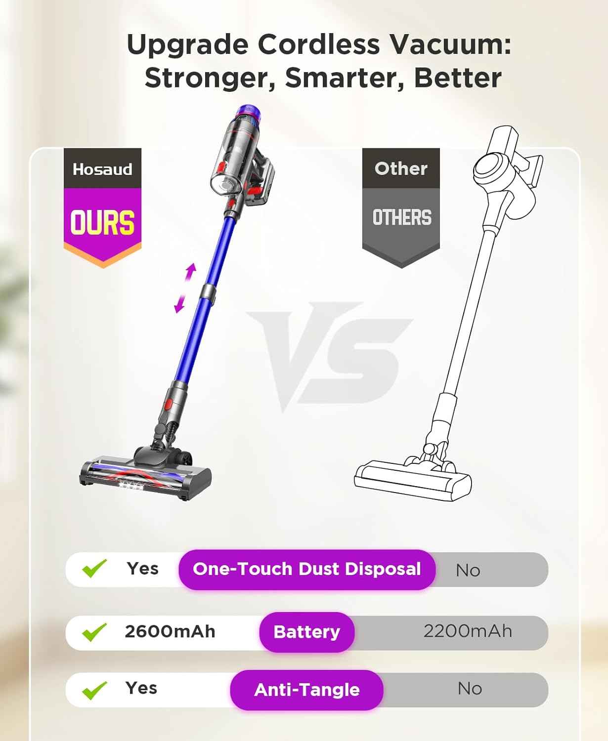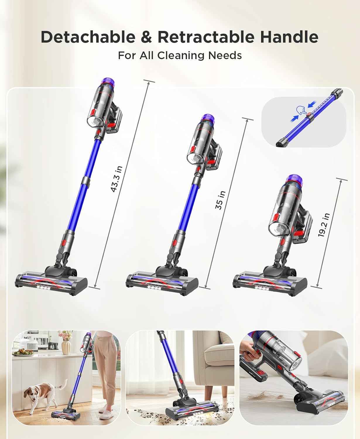 ✅ Powerful 550W Brushless Motor: Delivers strong suction to tackle dust, debris, pet hair, and more from carpets, hardwood floors, and tiles