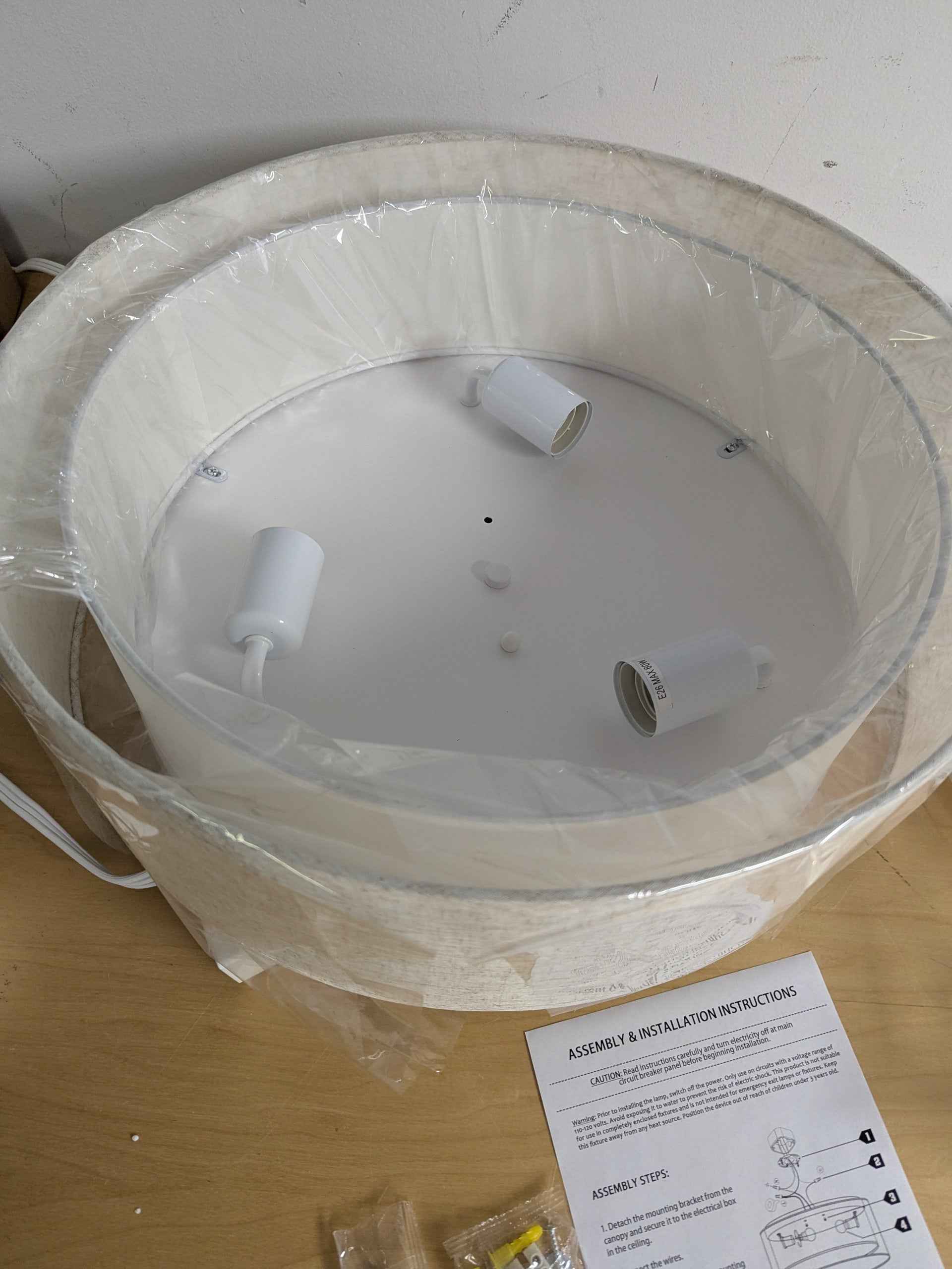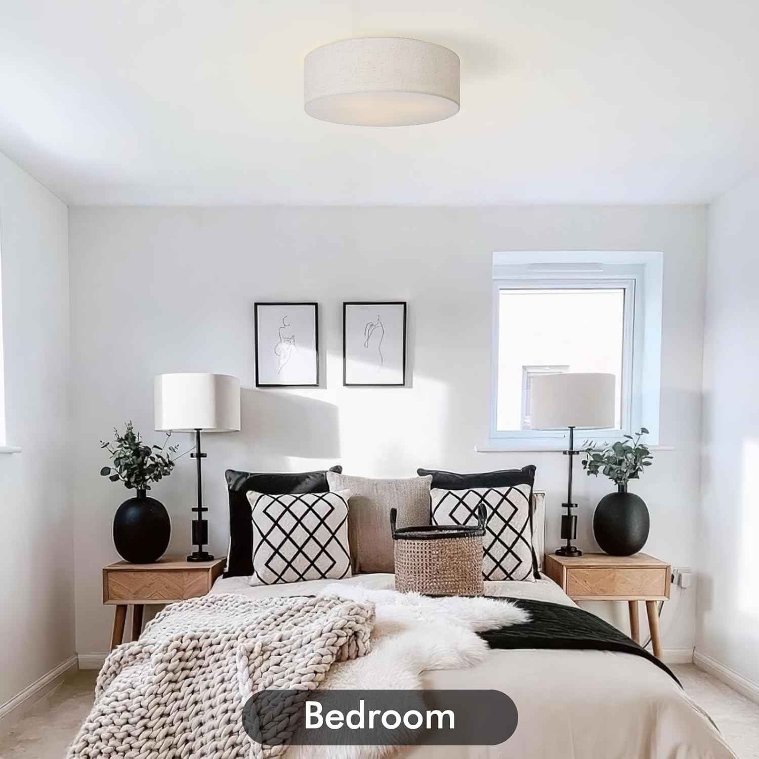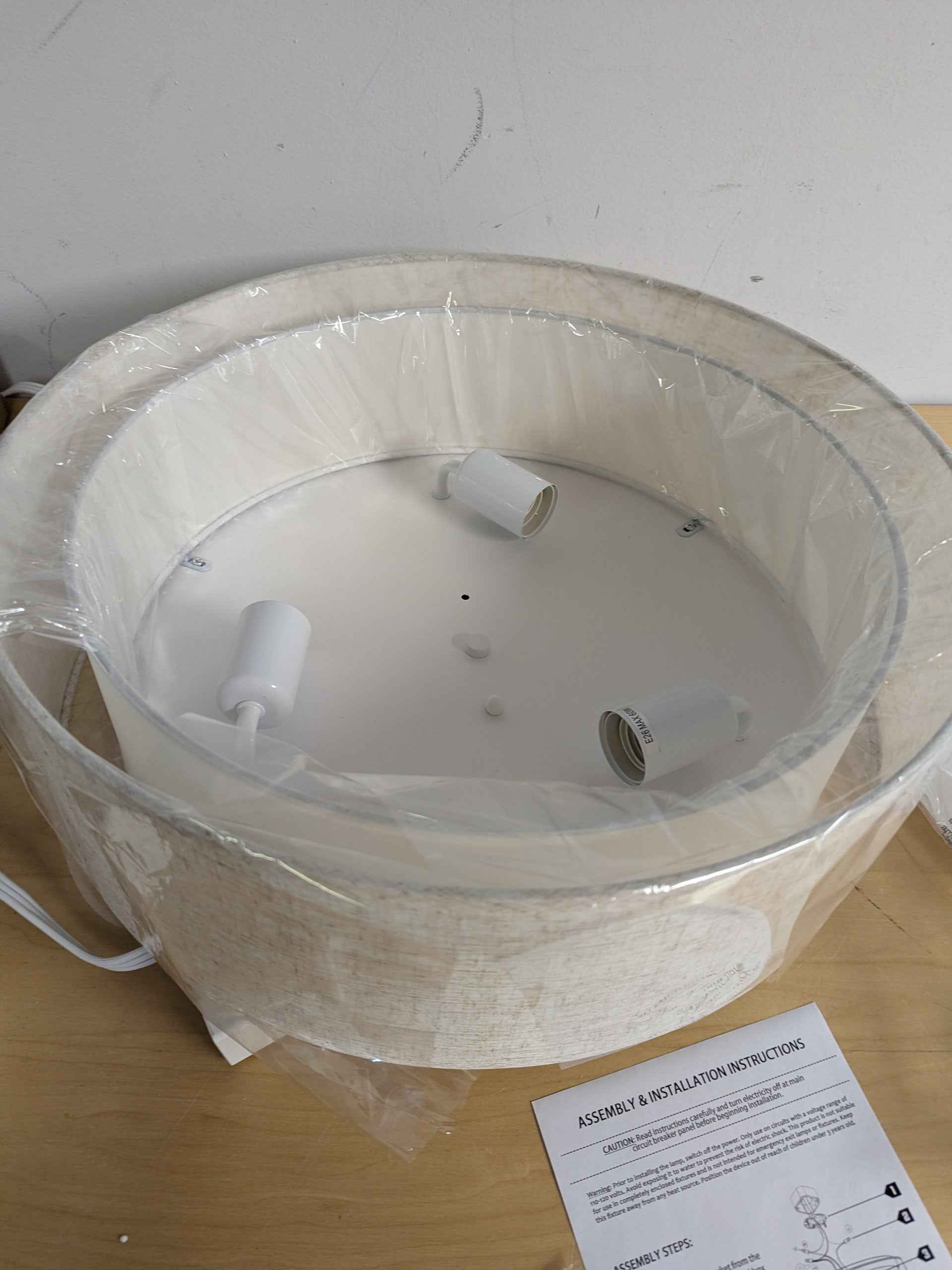 Modernize your space with the CALOKES 18-Inch Flush Mount Ceiling Light Fixture. This farmhouse-inspired drum-shaped light features a double-layered fabric shade—white gauze inner layer and linen outer layer—with an acrylic diffuser for soft, even illumination that’s gentle on the eyes.