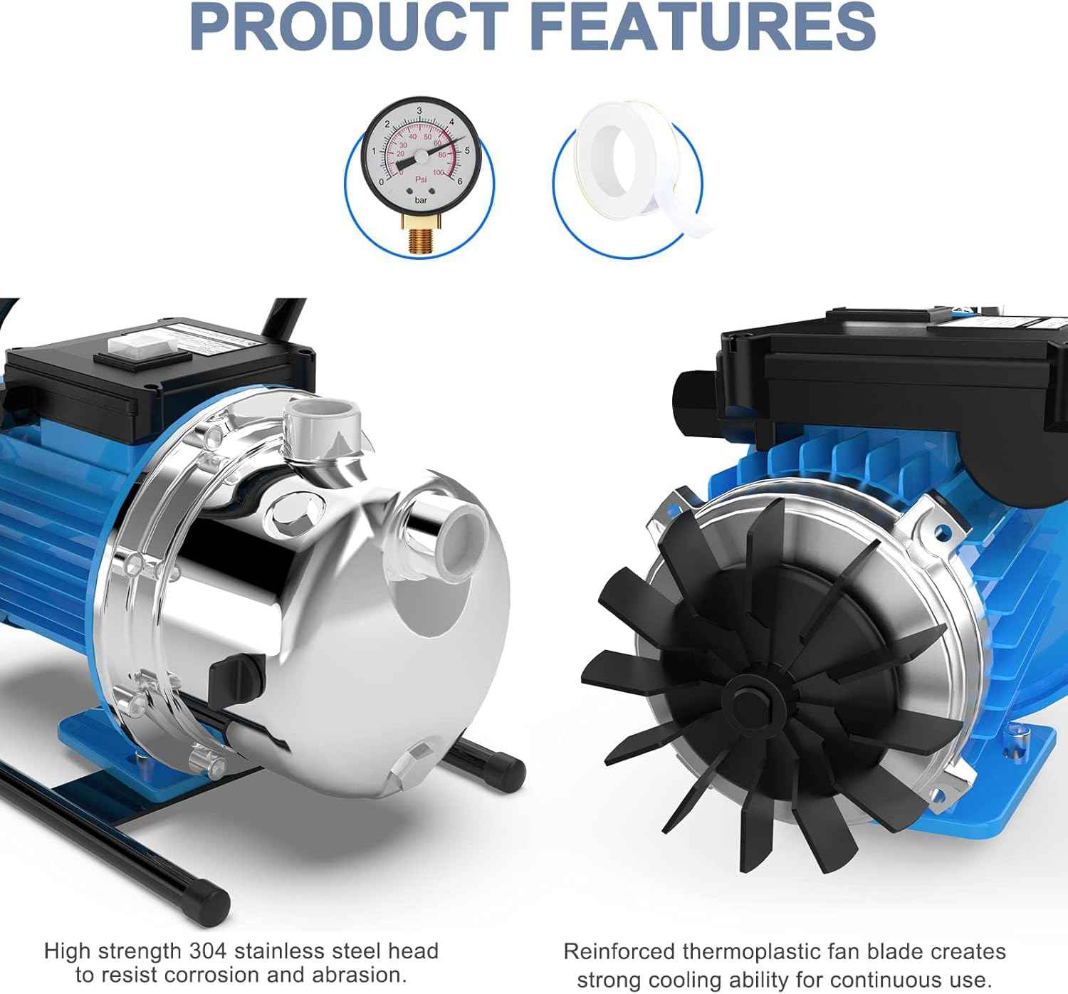 ✅ High Power Motor: Features a 1.6HP energy-efficient motor for strong flow and pressure, delivering up to 1215 GPH for efficient water transfer
