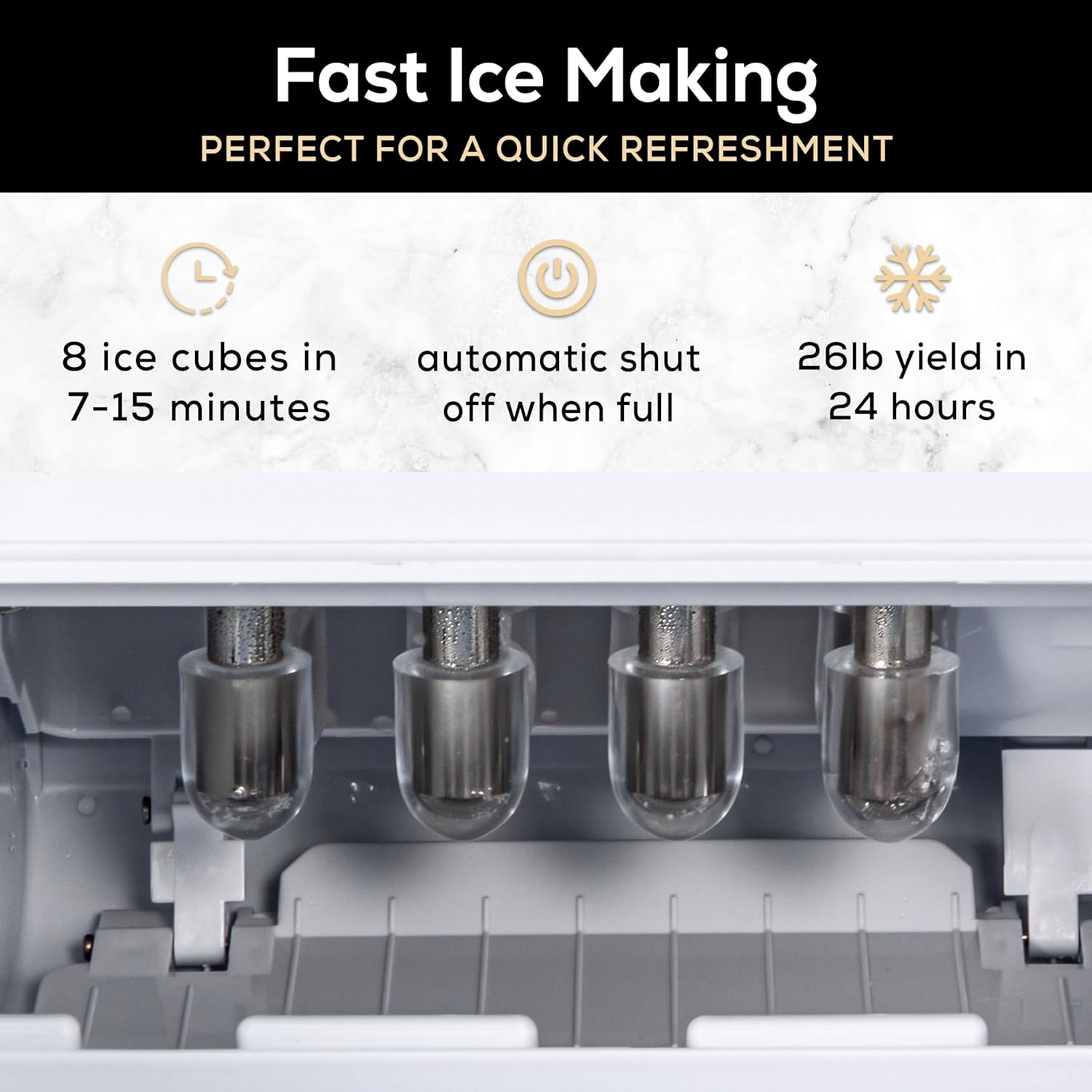 ✅ Large Water Tank Capacity: 2-quart tank ensures long-lasting ice production without frequent refills.
