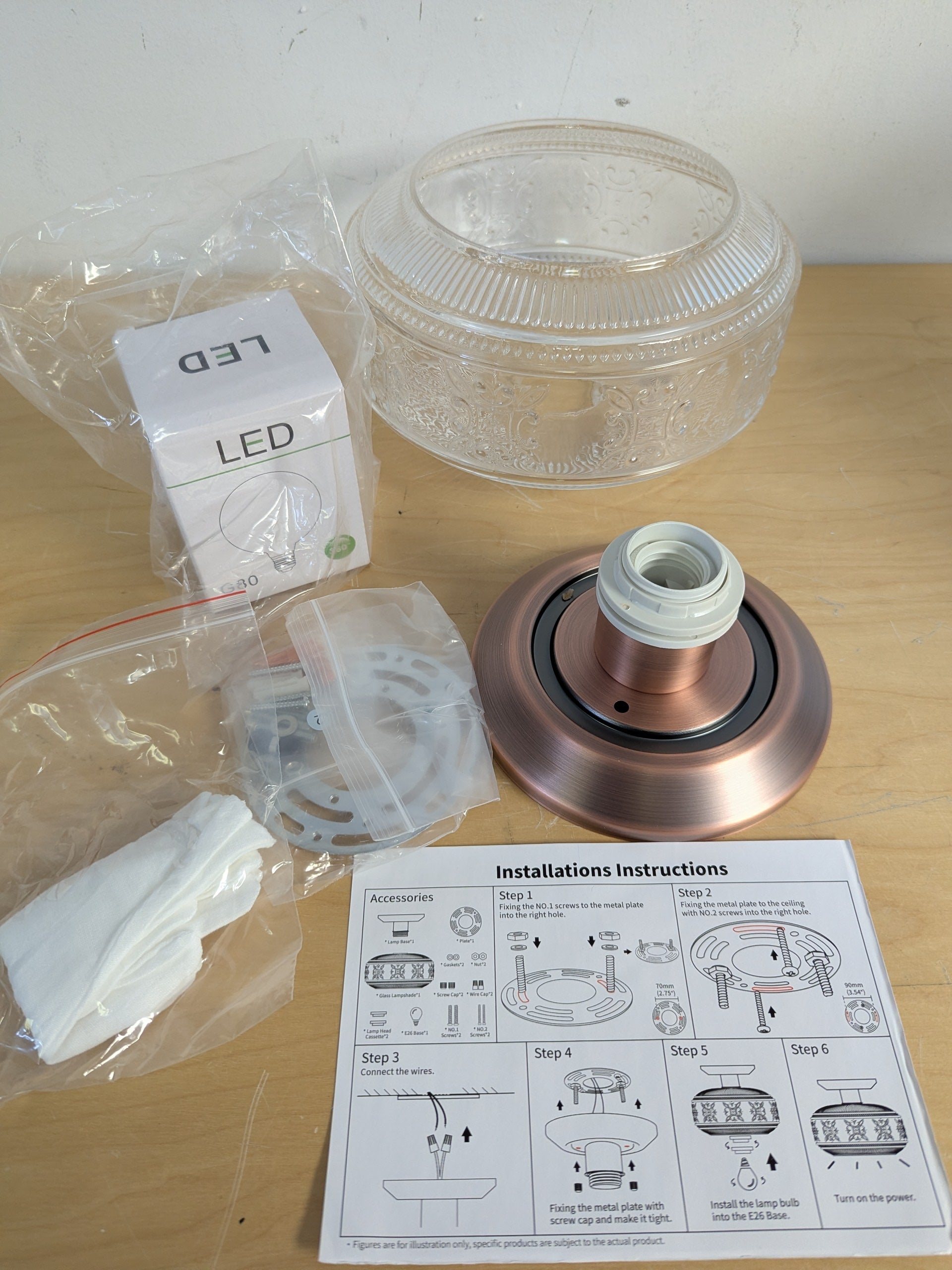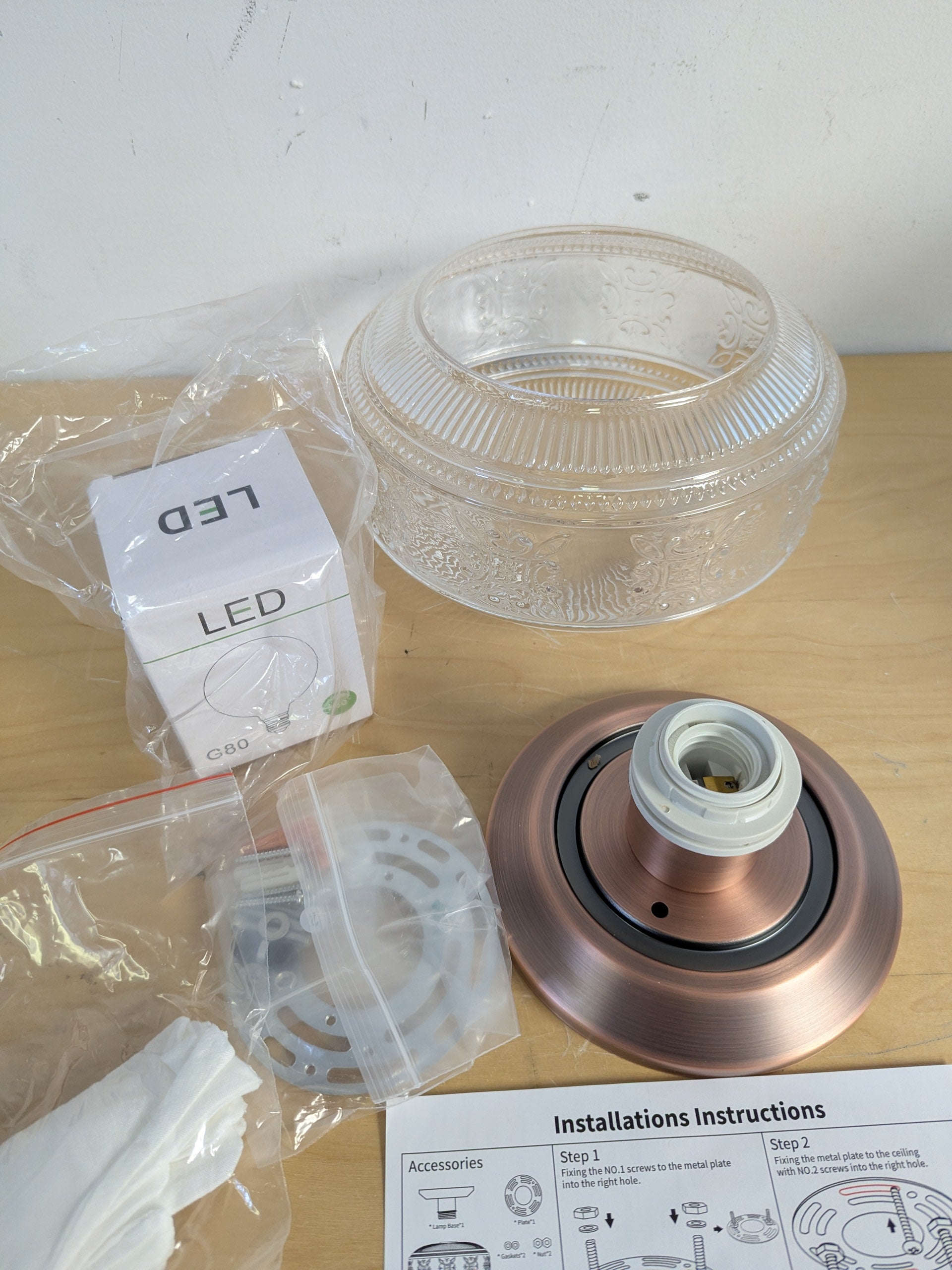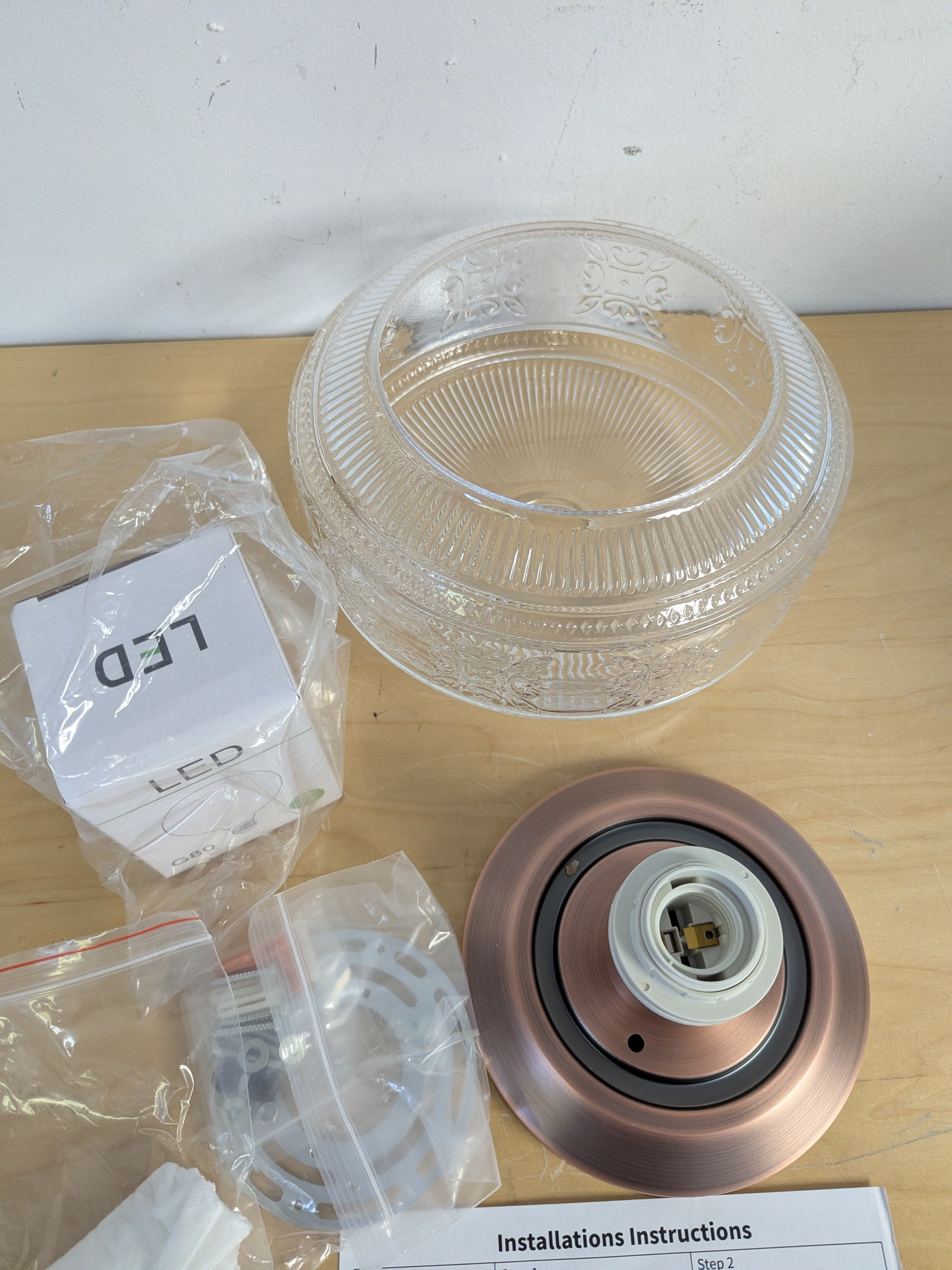 Condition - New Elevate your space with the KnLnny Ware Bronze Flush Mount Ceiling Light, featuring a timeless classical glass... Read more