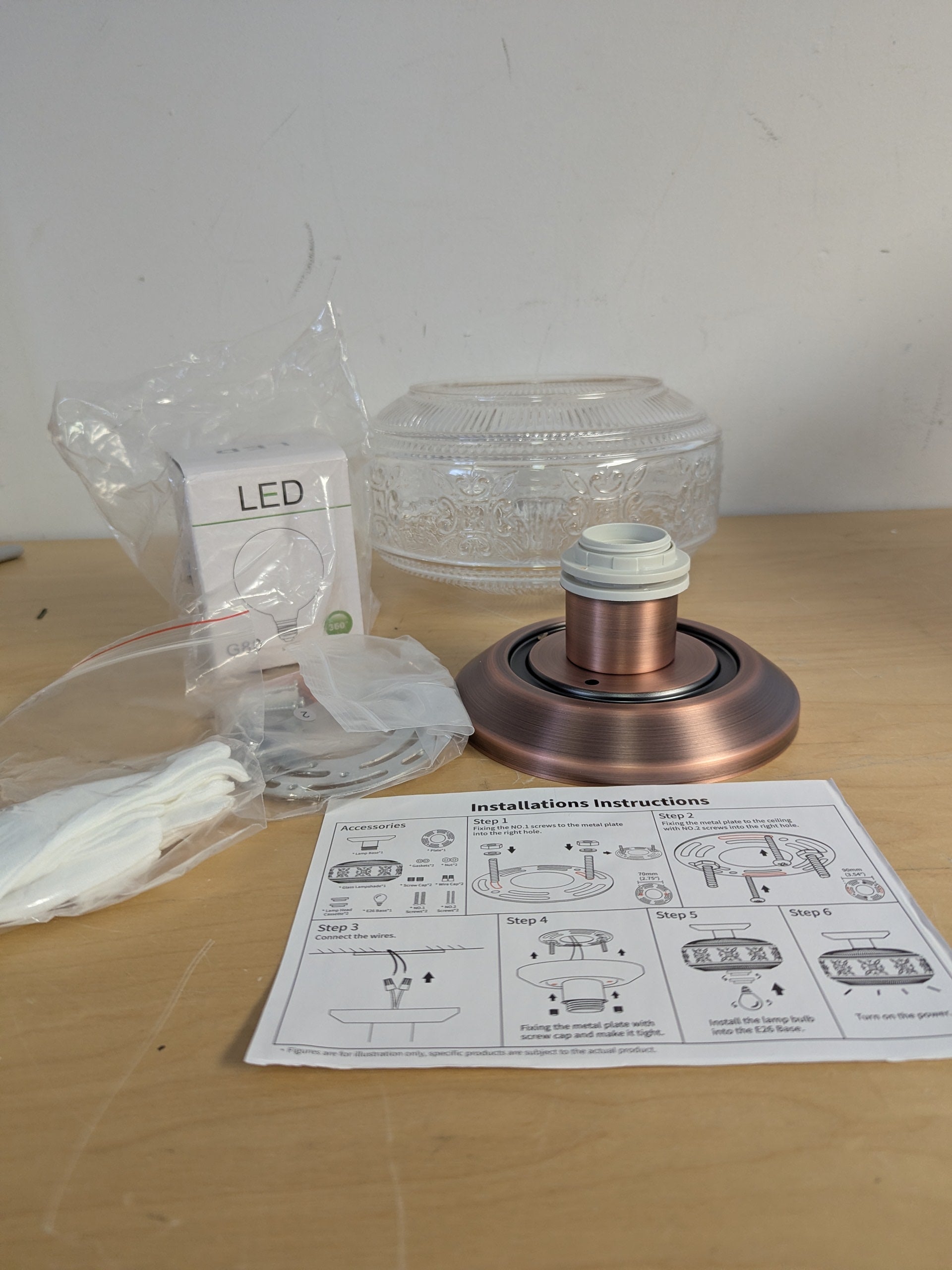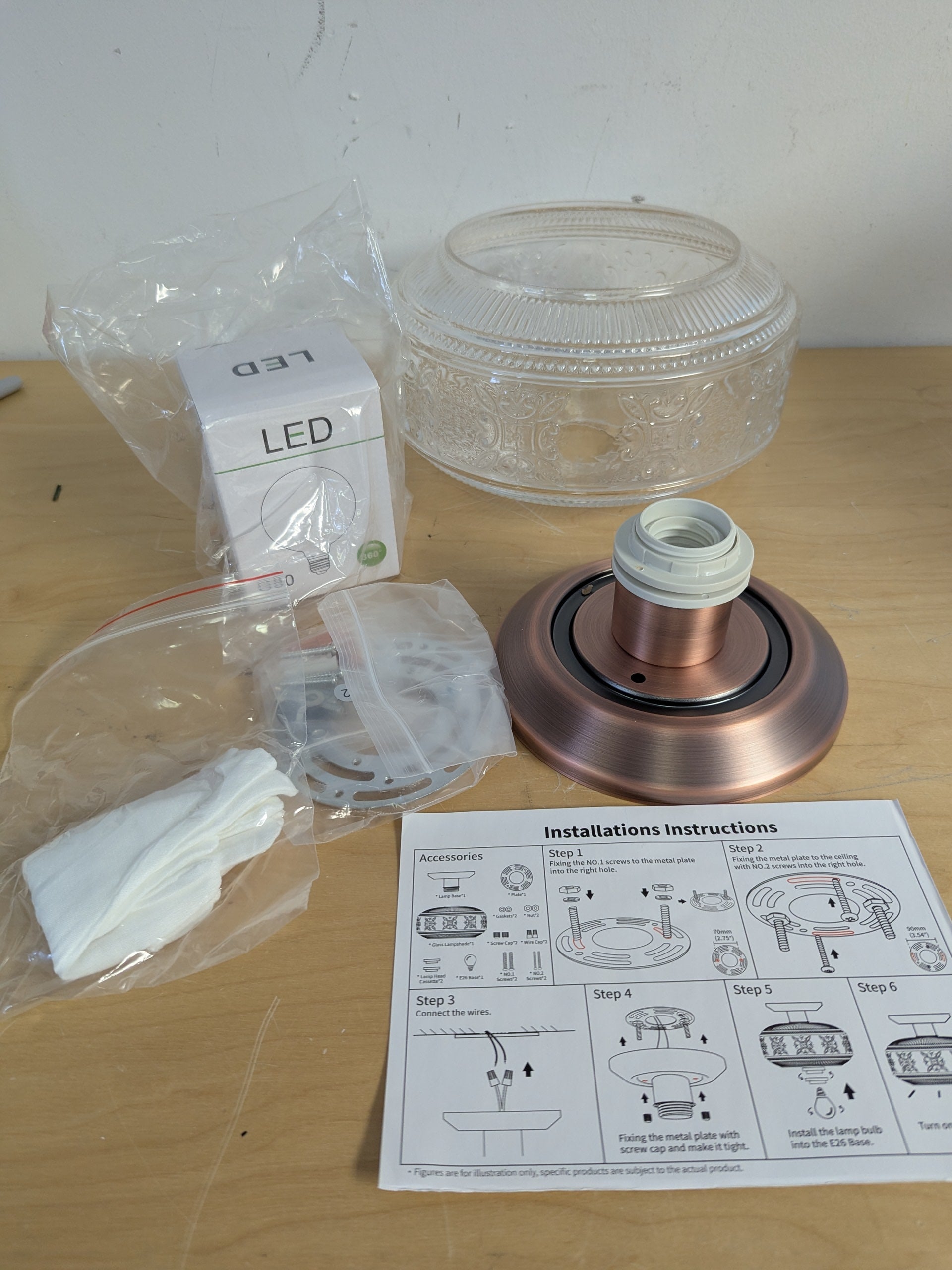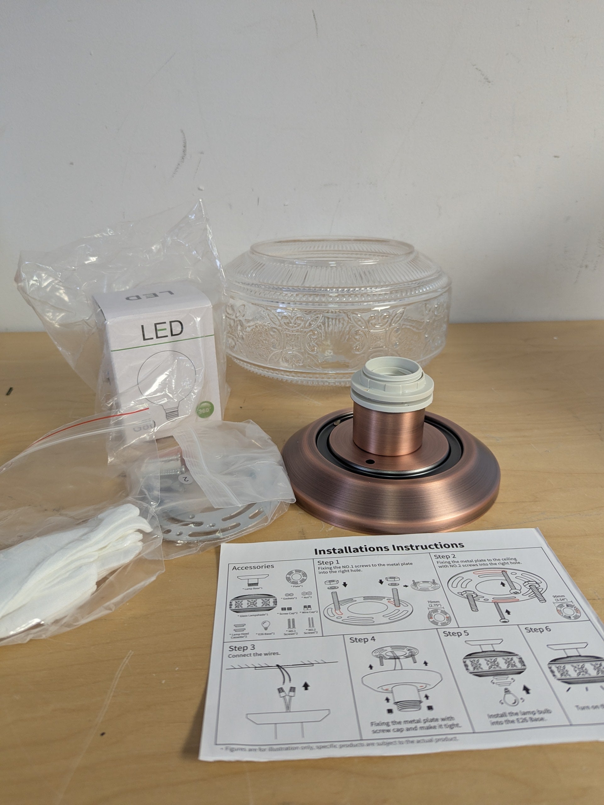 Condition - New Elevate your space with the KnLnny Ware Bronze Flush Mount Ceiling Light, featuring a timeless classical glass... Read more
