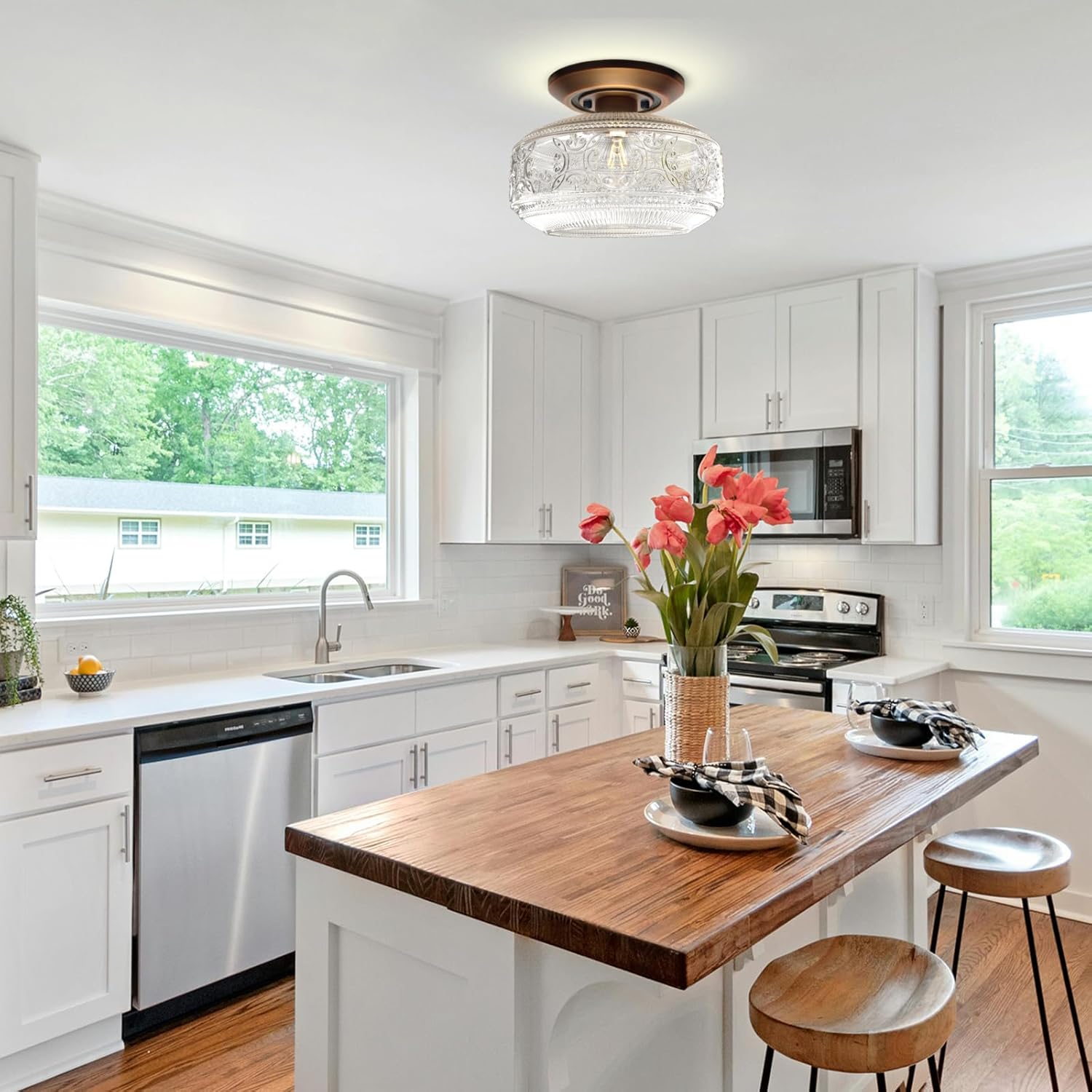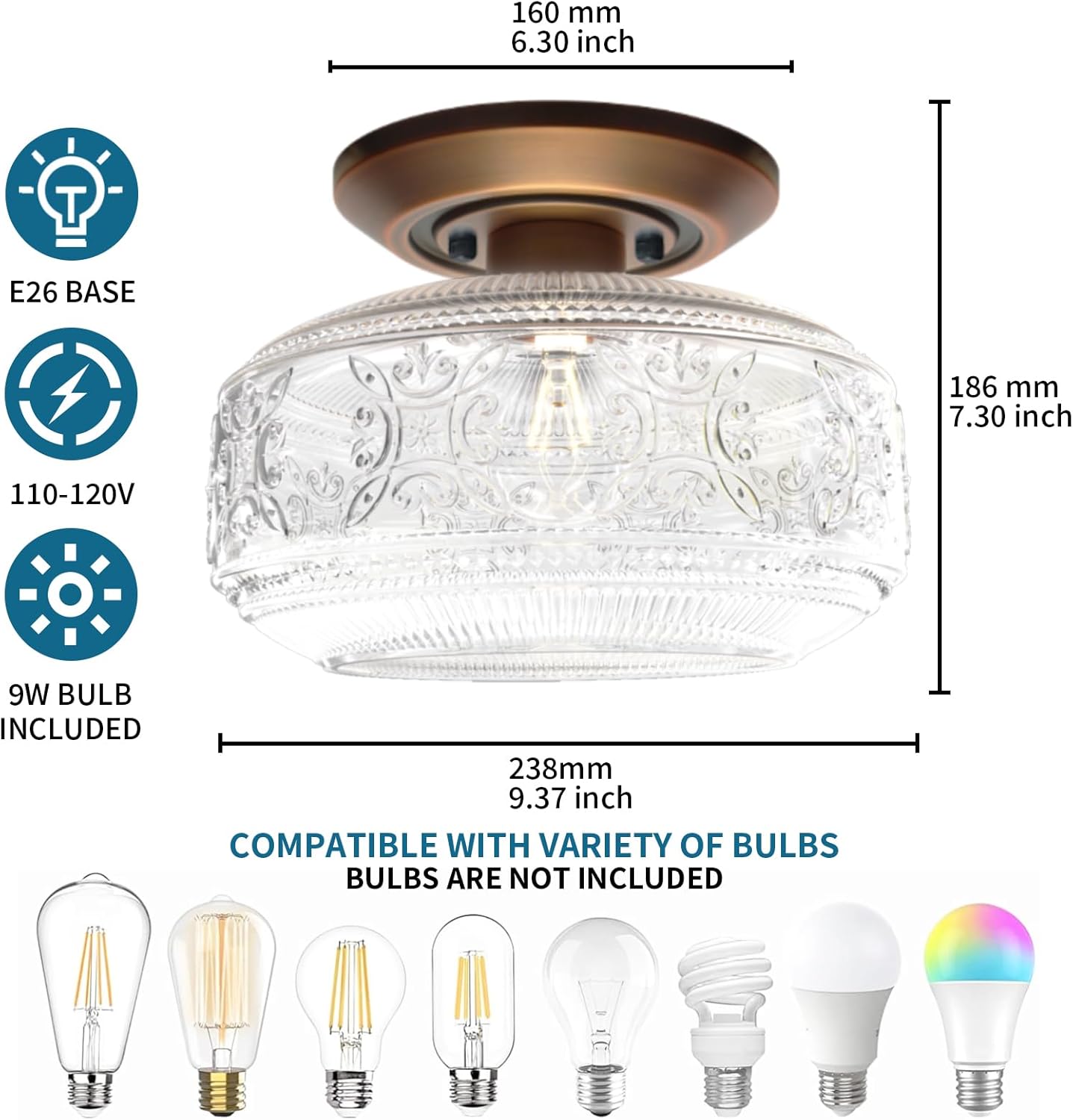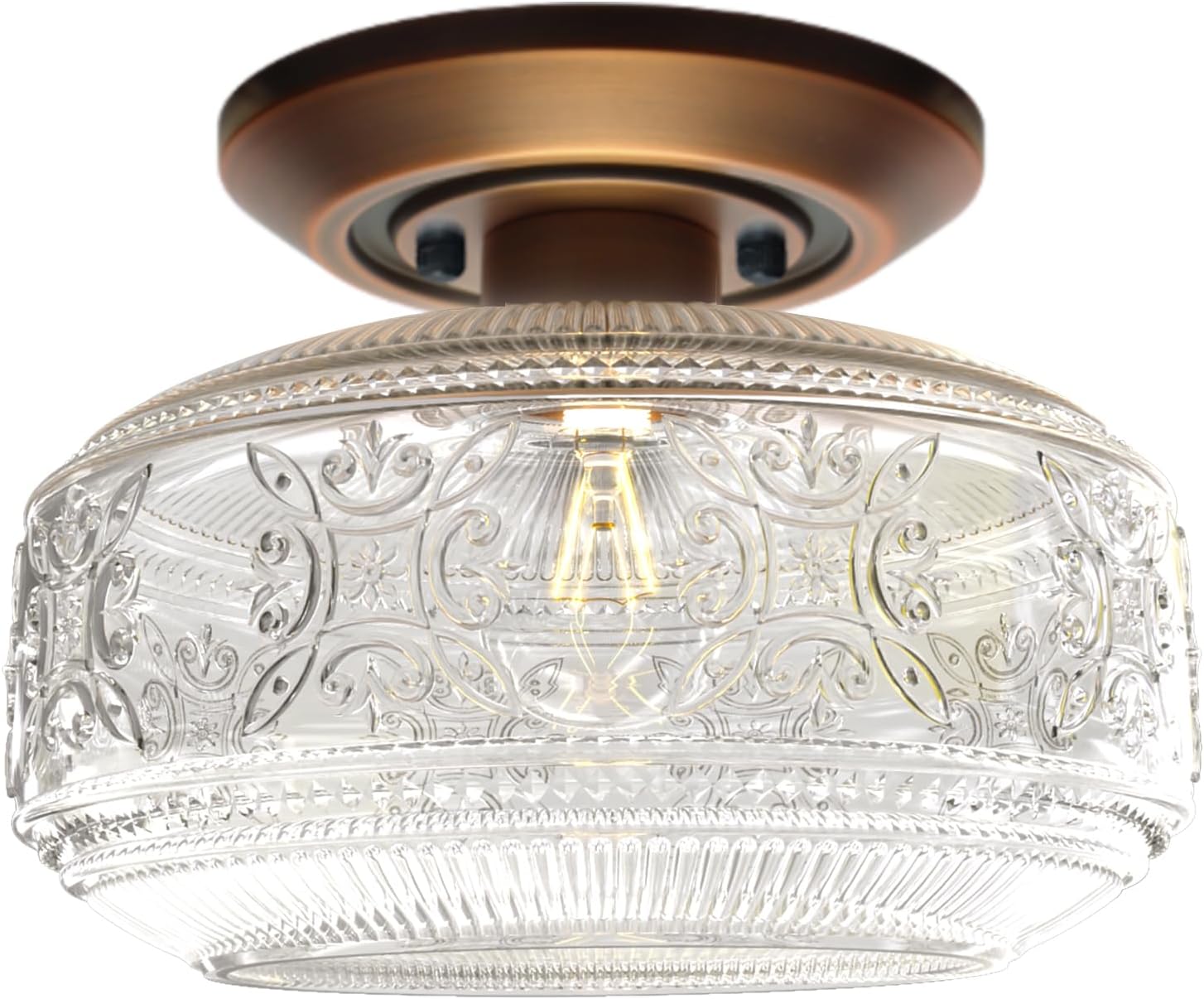 KnLnny Ware Bronze Flush Mount Ceiling Light with Classical Glass Shade, Ceiling