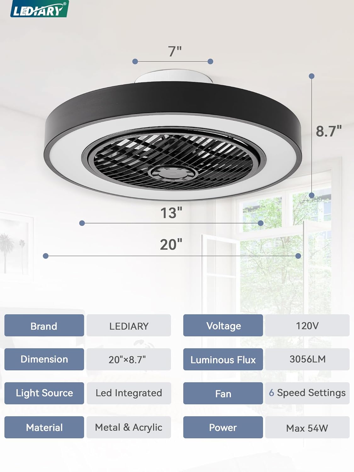 ✅ Smart Control Options: Operate via remote control (FCC certified) or the LEDIARY app to adjust color temperature, brightness, and direction – perfect for summer cooling or winter air circulation