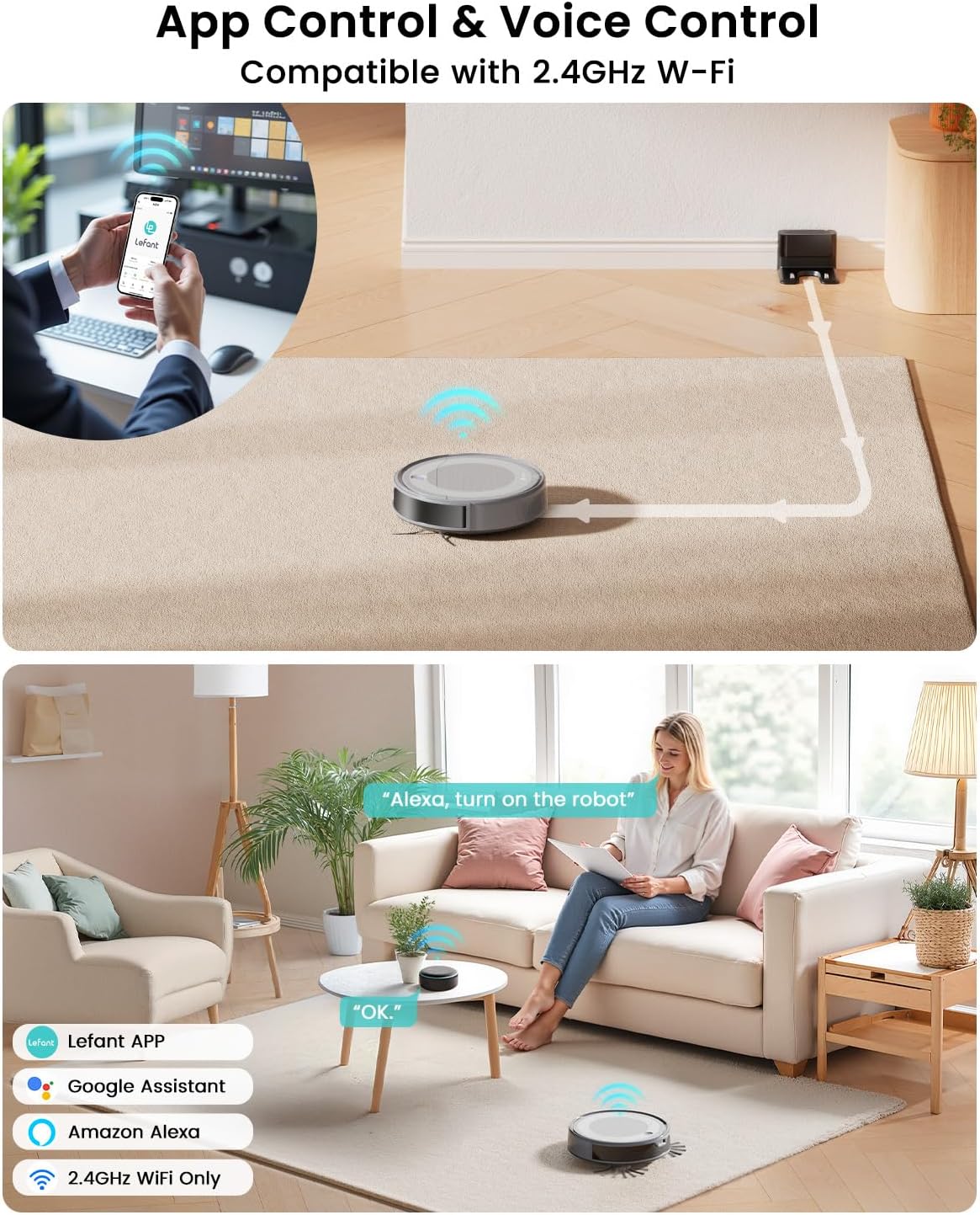 ✅ Smart Voice Control & App Integration: Easily control and manage cleaning tasks using voice assistants or the Lefant app