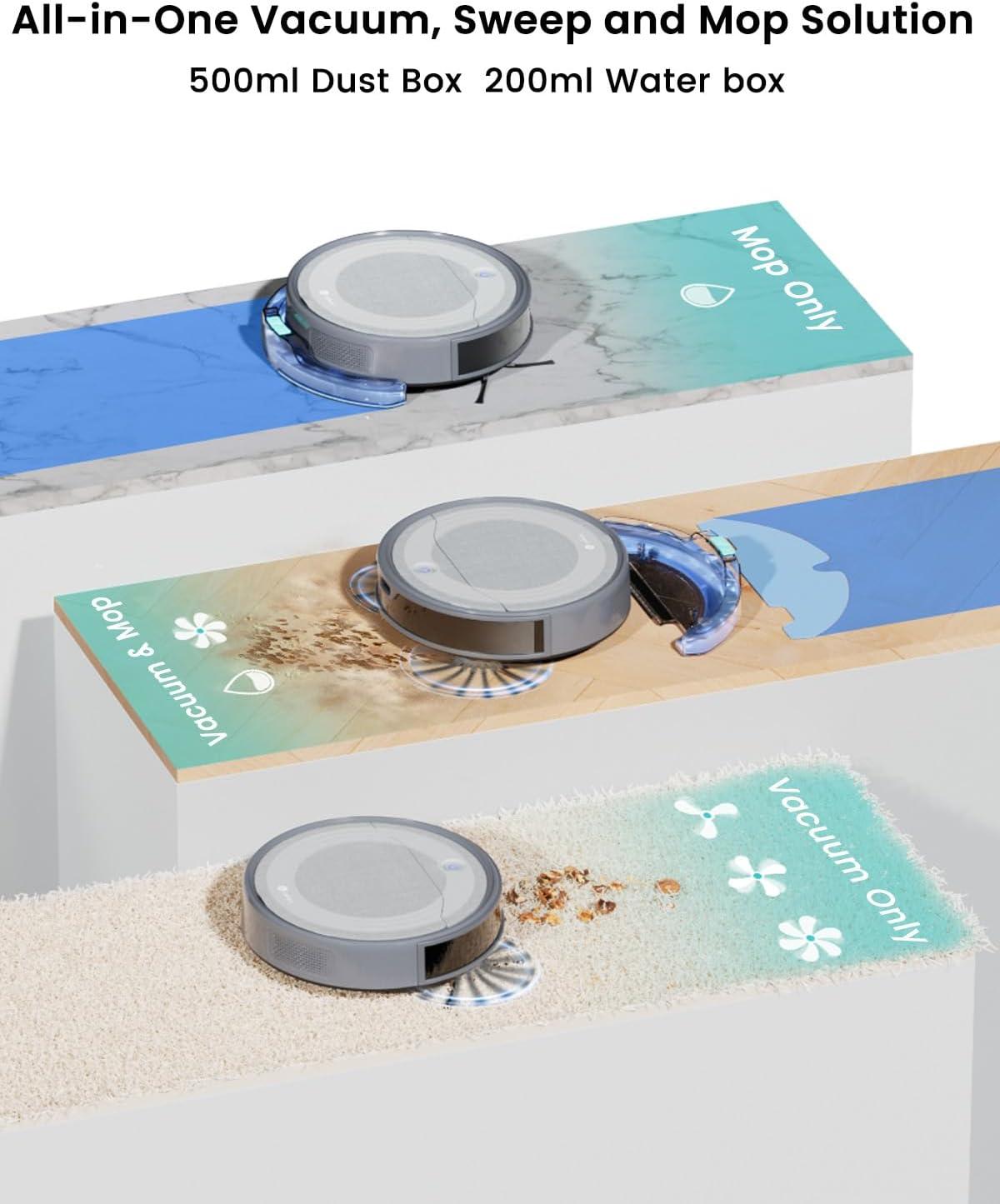 ✅ 2-in-1 Vacuuming & Mopping: Switch between vacuum-only, mop-only, or combined modes to suit hard floors and low-pile carpets