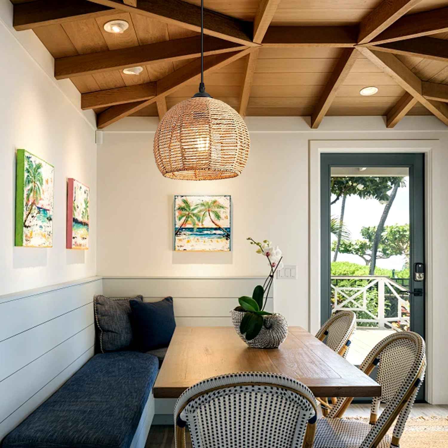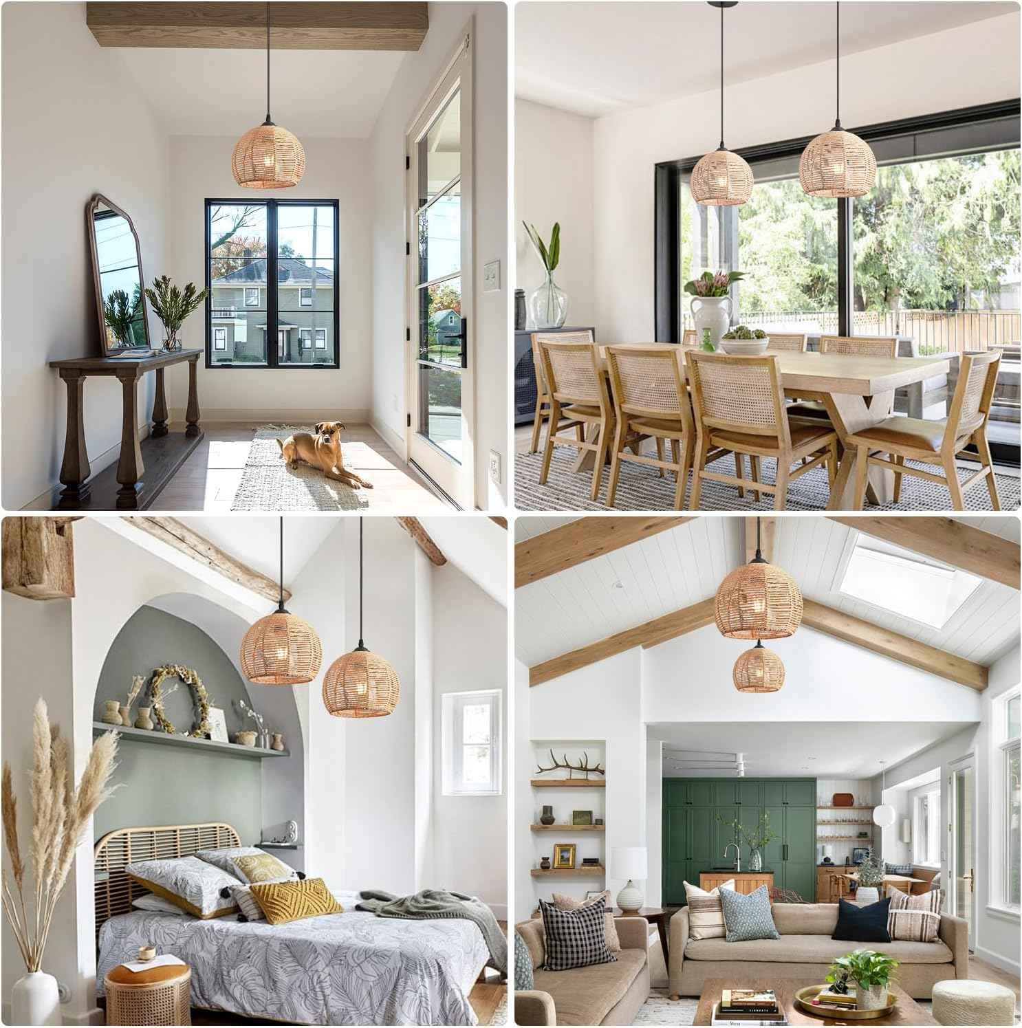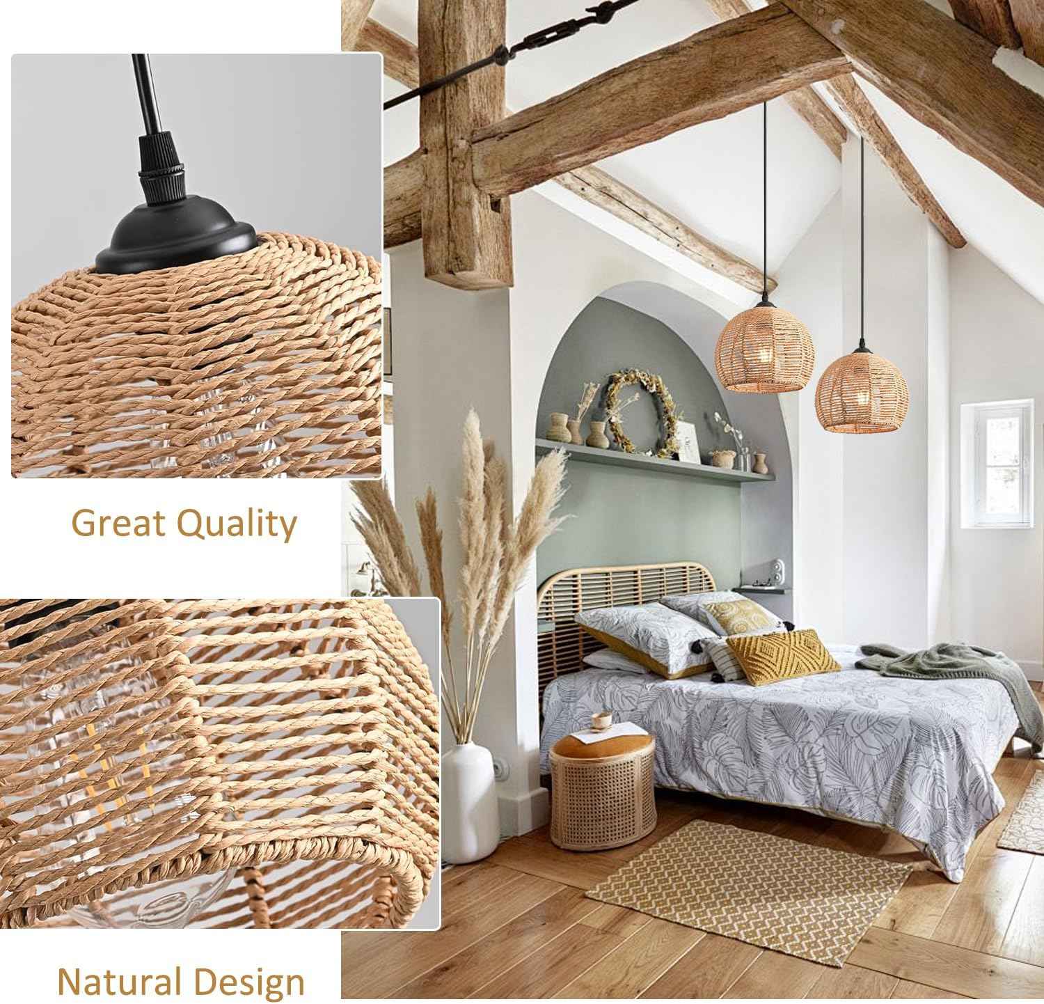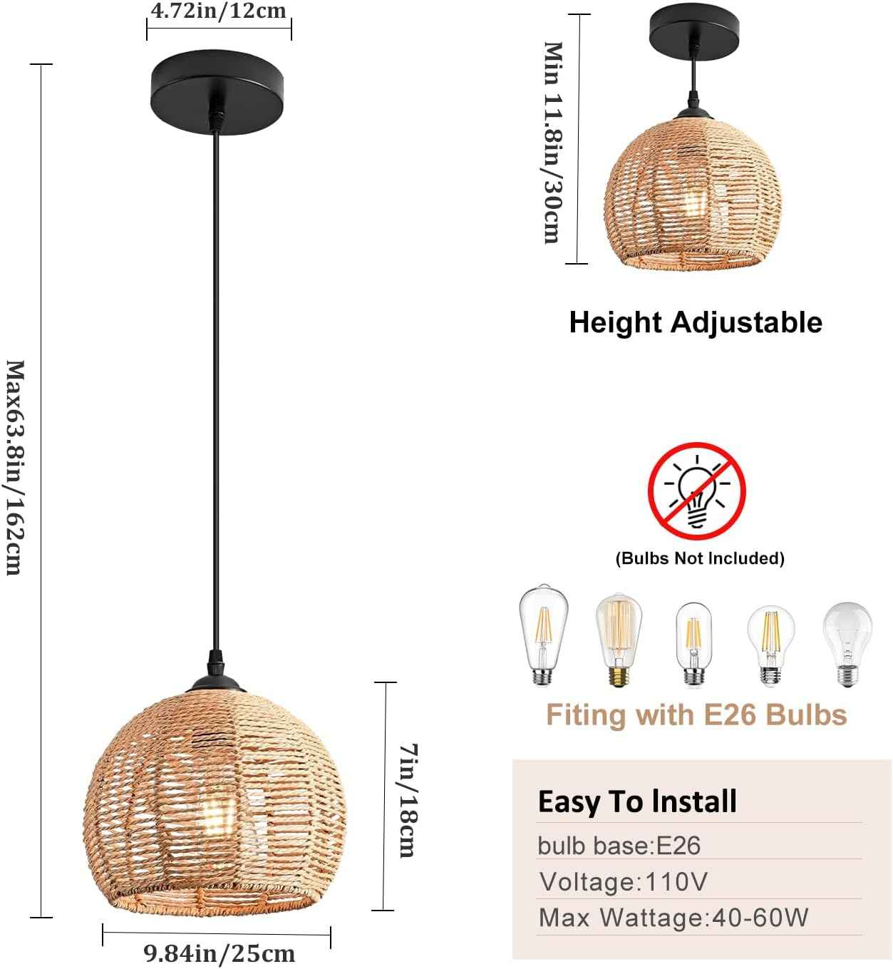 ✅ Natural Rattan Design: Made from high-quality rattan and woven jute rope, this light brings a touch of nature into your home with its organic texture and earthy aesthetic.