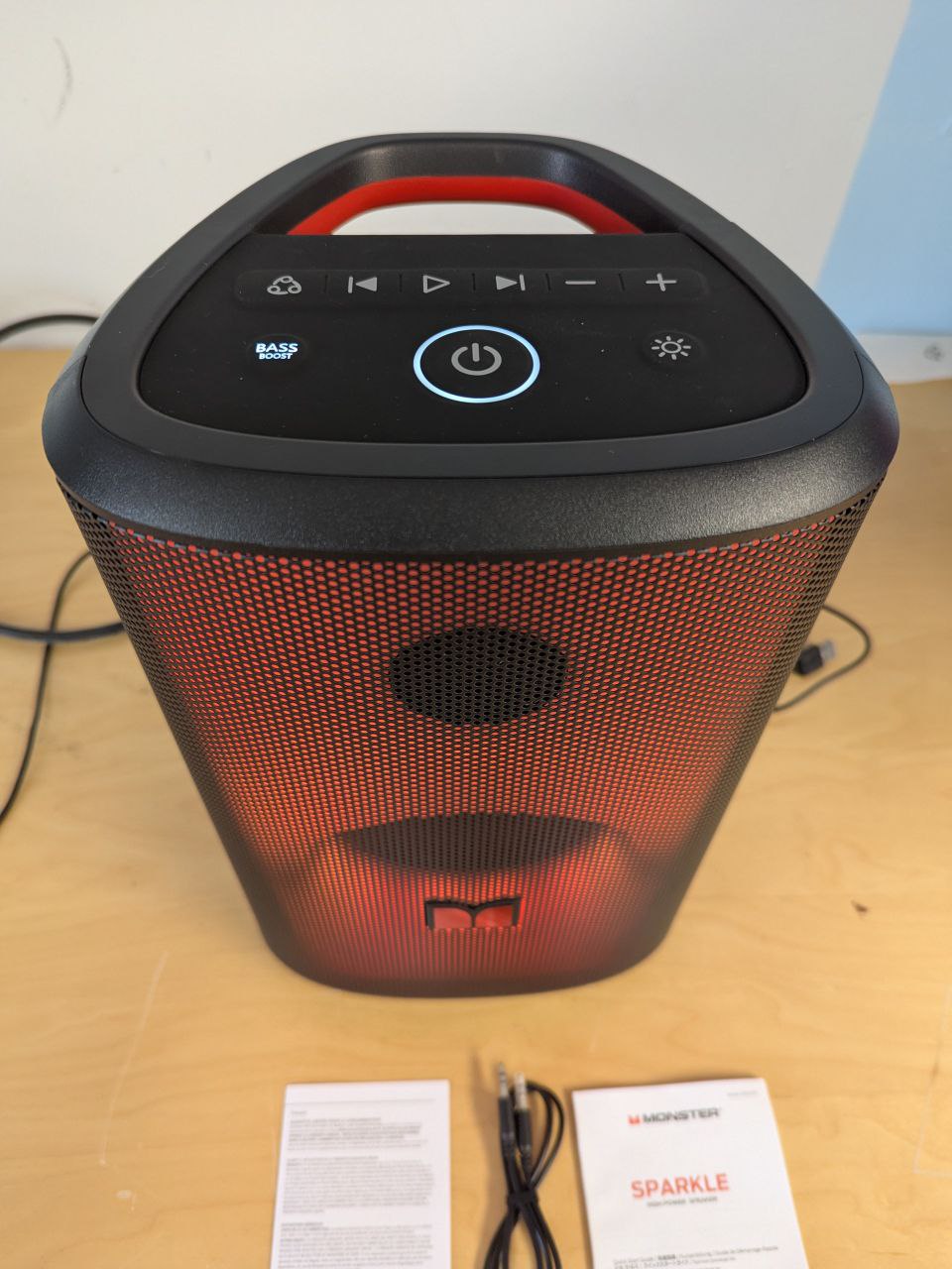 Experience powerful audio with the Monster M172 Floor Standing Bluetooth Speaker. Designed for immersive sound and dynamic visuals, this speaker delivers 80W of high-performance output through a combination of a 2" tweeter and a 5.25" subwoofer, ensuring rich bass and detailed audio clarity.