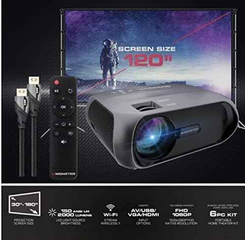 Enjoy an immersive viewing experience with the Monster Vision Image Stream Projector. Whether you're watching movies, gaming, or giving presentations, this projector delivers stunning visuals with full HD resolution and bright, vivid colors. Perfect for home theaters, parties, and more!