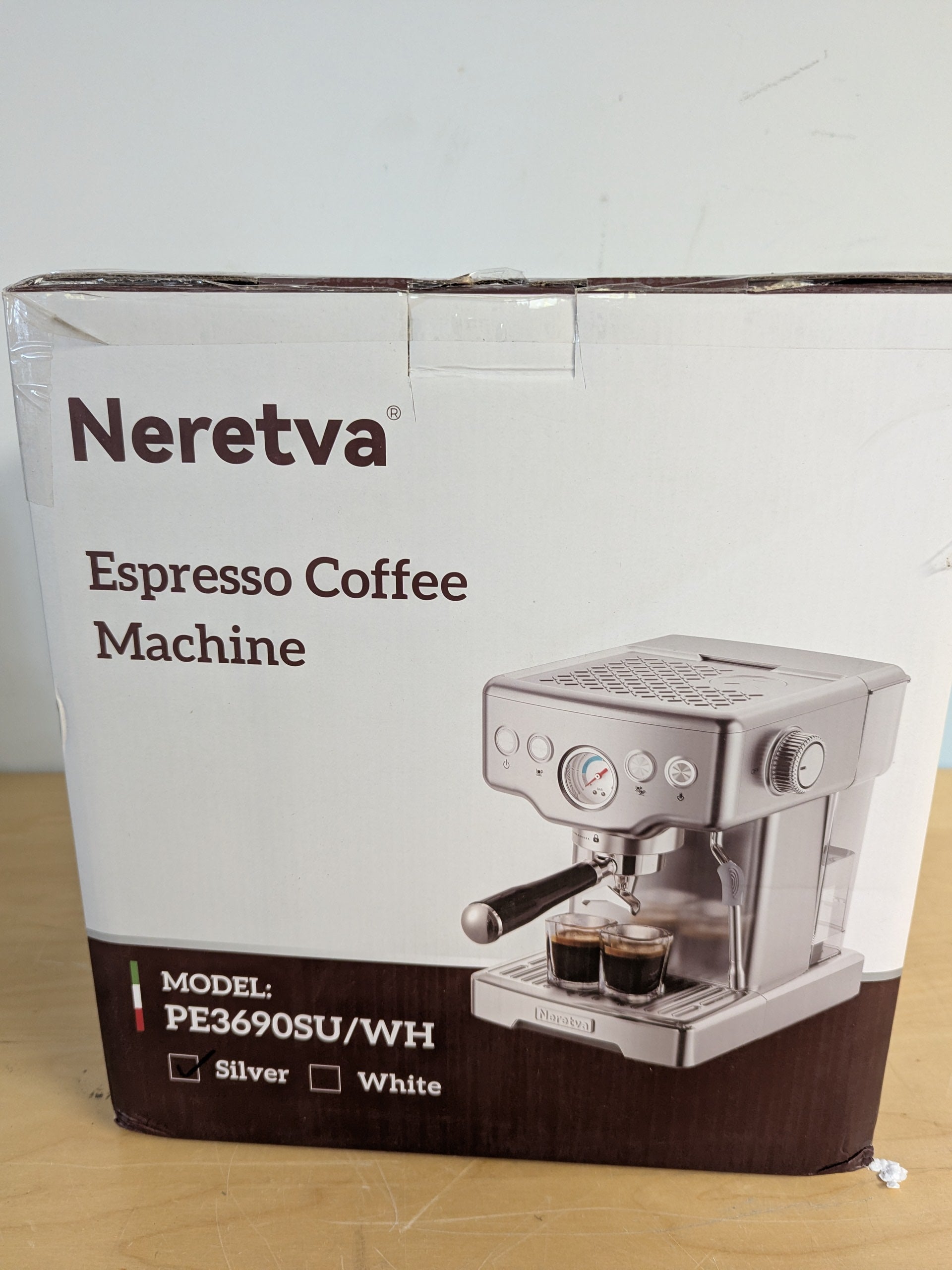 Elevate your coffee experience with the Neretva Professional 15 Bar Espresso Machine, a compact and powerful espresso maker designed for home or office use. This stainless steel espresso machine delivers barista-quality espresso, cappuccino, and latte with its 15-bar pressure system and precise temperature control. The built-in pressure gauge allows for real-time adjustments to suit your personal taste, while the 198°F water temperature ensures optimal extraction.