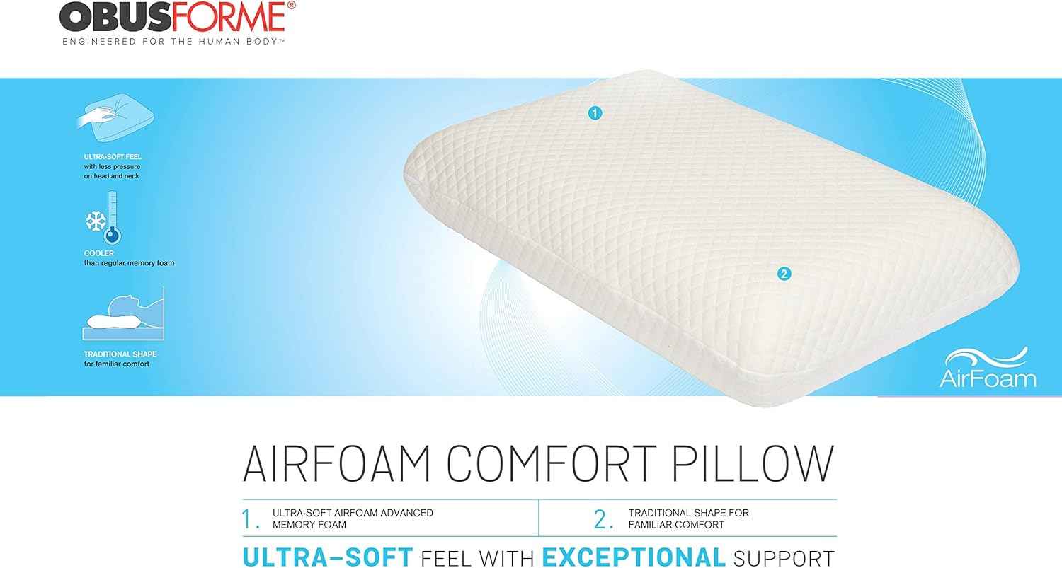 ObusForme Airfoam Neck Pillow | Traditional Pillow | Ultra Soft, Cool Comfort, M