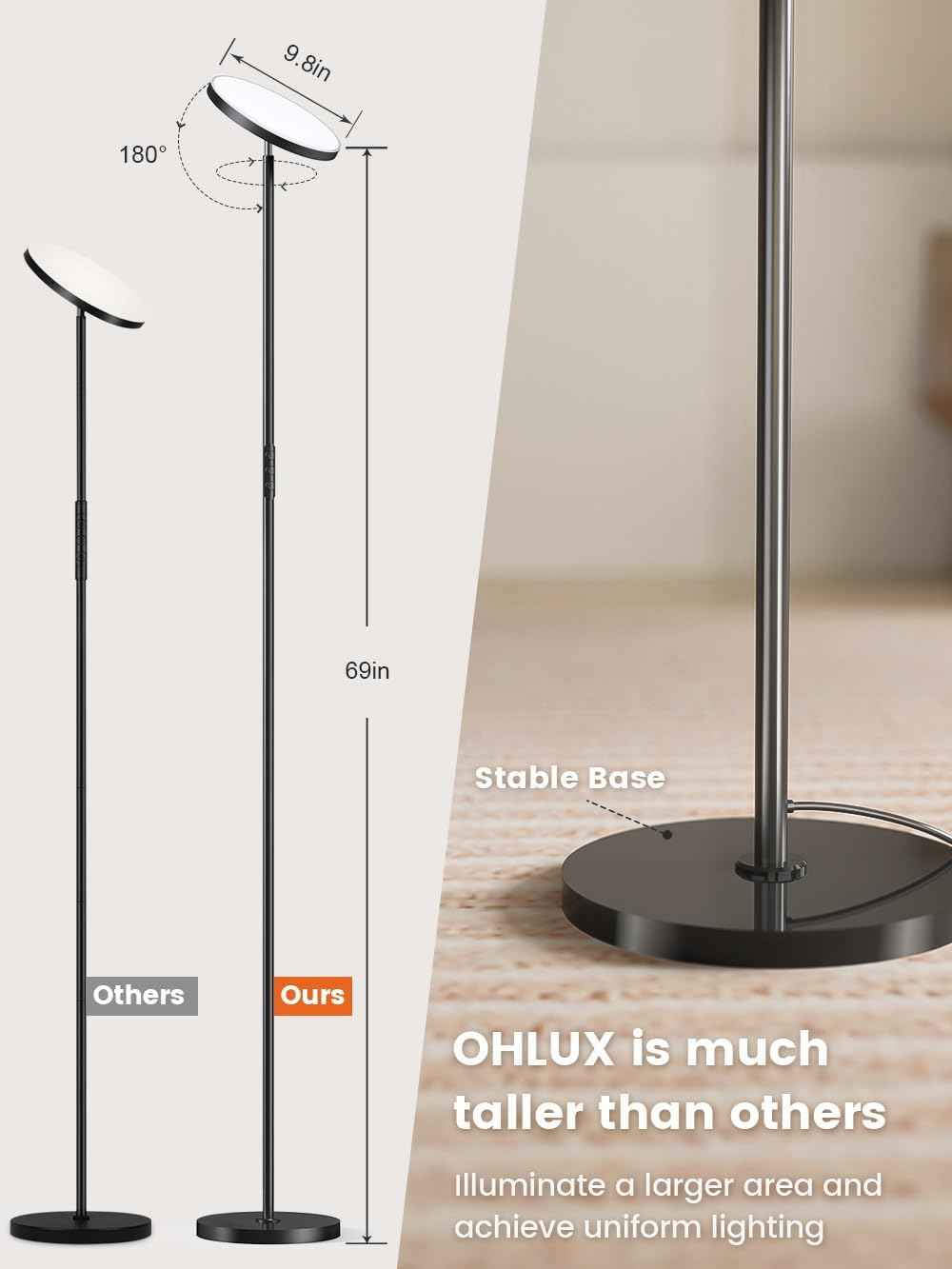 Upgrade your lighting with the OHLUX Sky LED Torchiere Floor Lamp. This modern standing pole light delivers exceptional brightness and versatility with customizable color temperatures and intuitive controls.