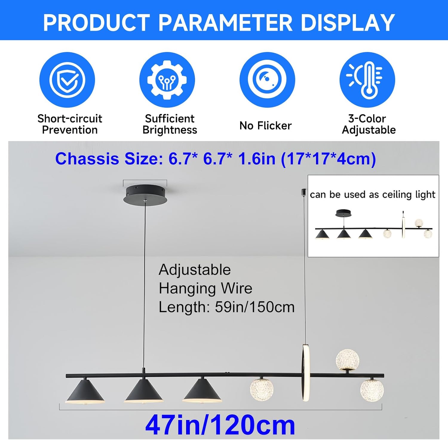 ✅ Distinctive Design + Suitable Size: Measuring 120L x 20W x 160H cm (47in x 7.9in x 63in), this chandelier is ideal for dining rooms, kitchens, living rooms, and more. The adjustable hanging wire allows for easy installation at the perfect height. Its modern design complements both Nordic and minimalist interiors.