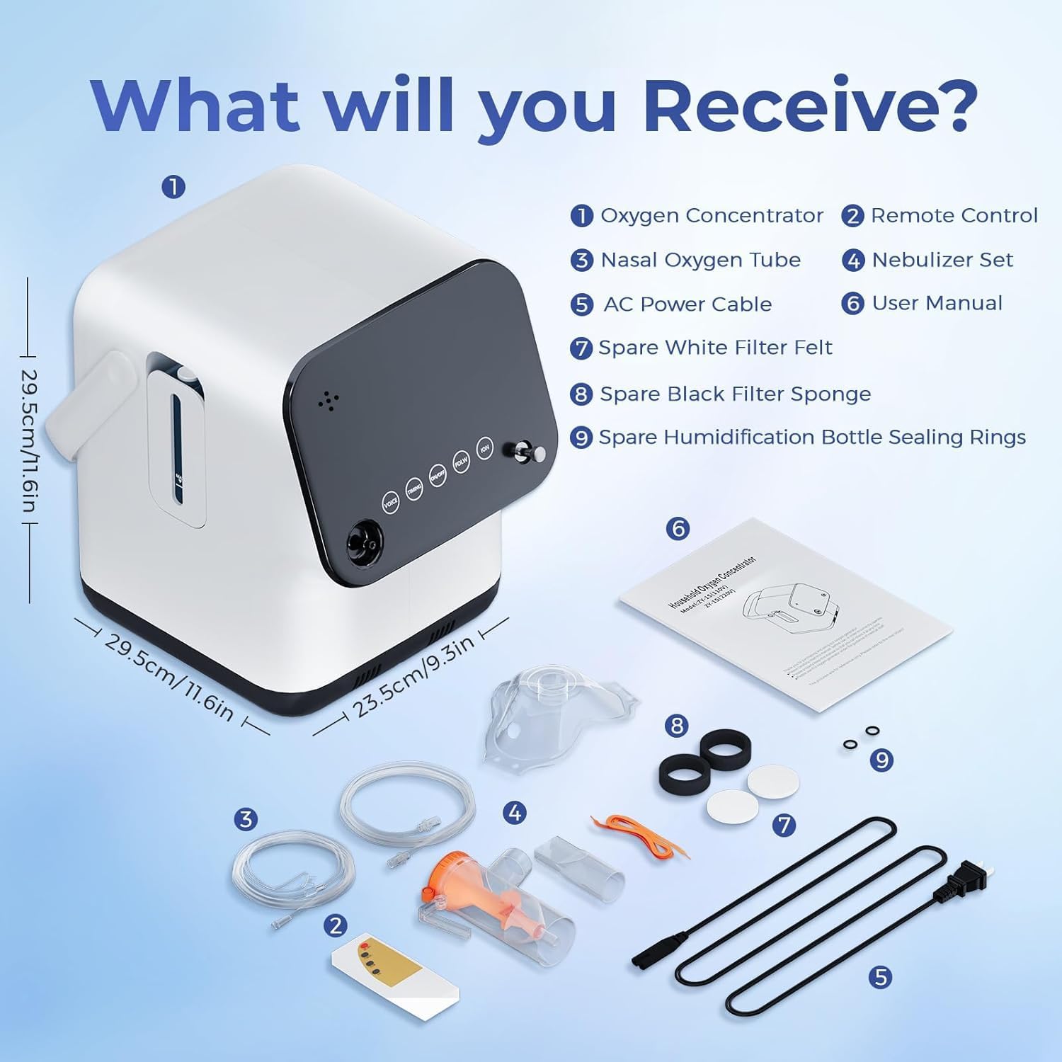 Oxygen Concentrator for Home & Travel Use - Touch Screen Control, Adjustable Flo