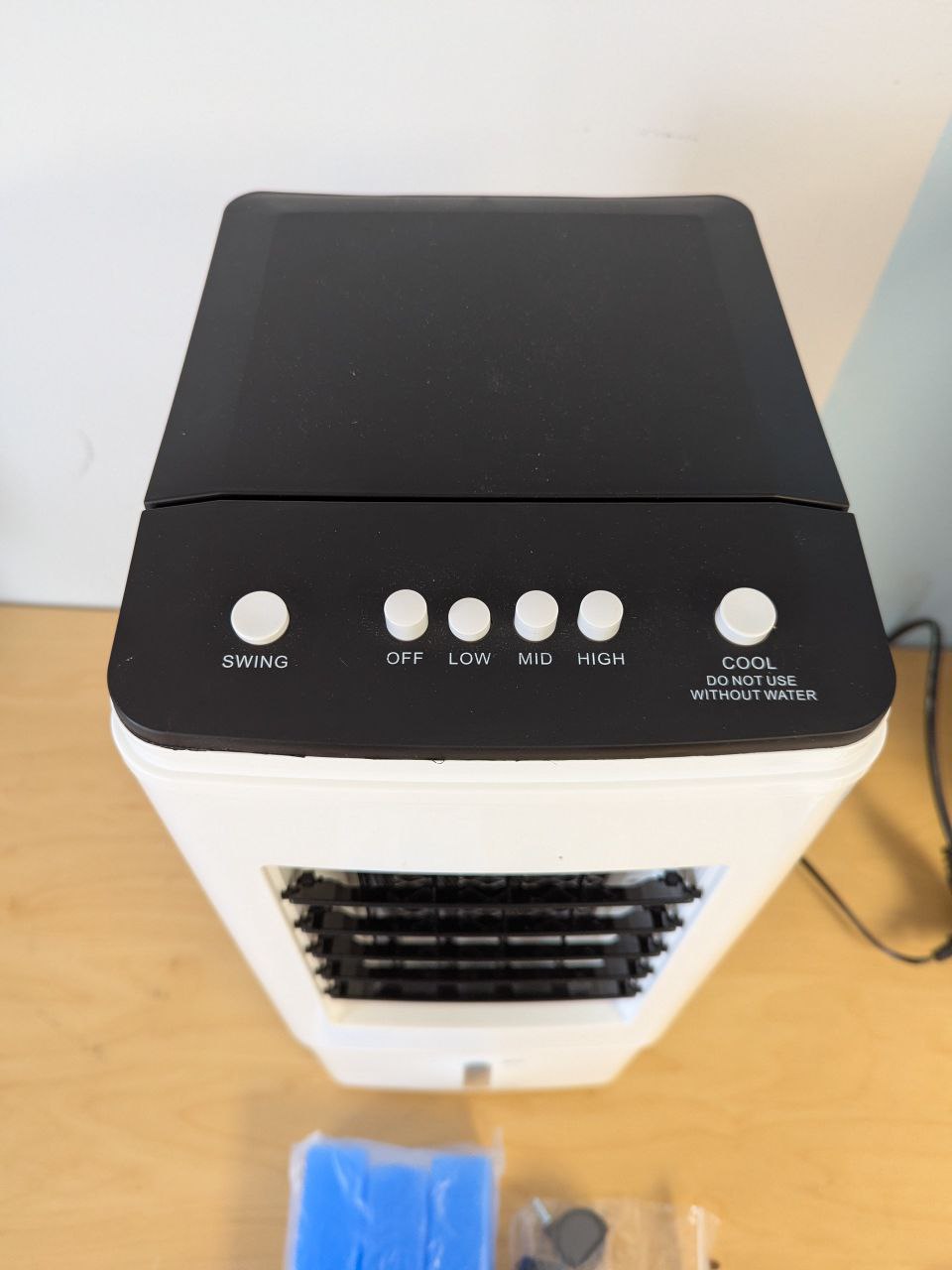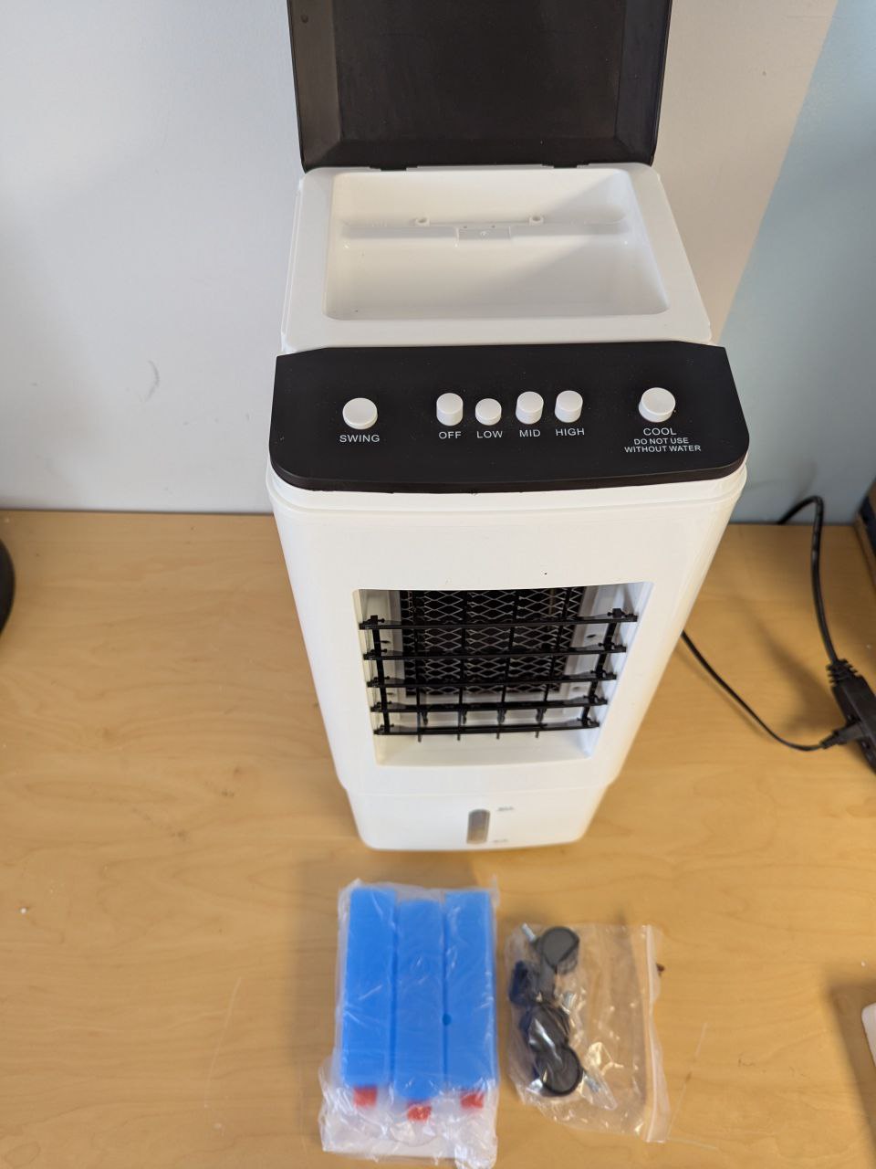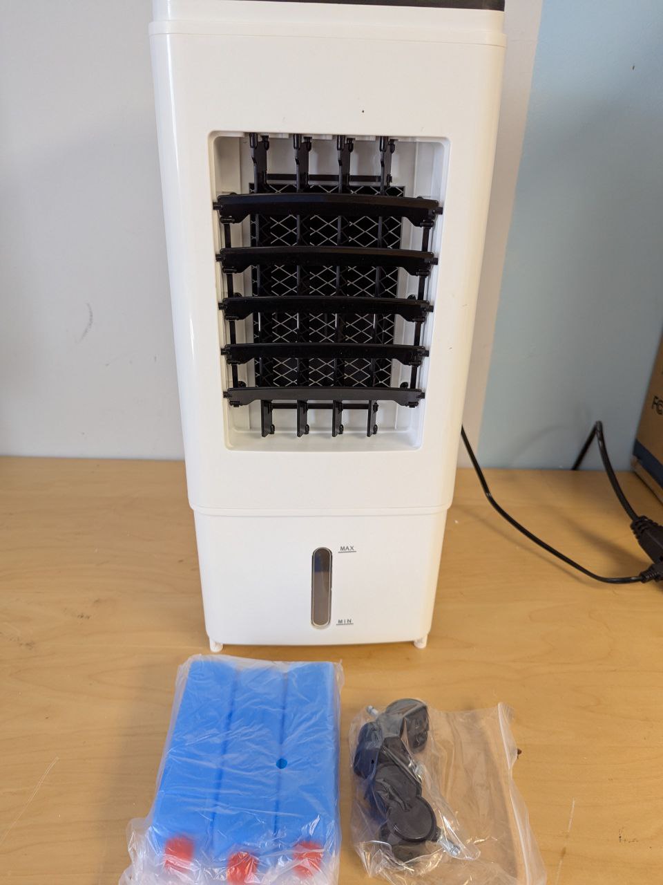 • Included Components: 1× Evaporative Air Cooler, 3× Ice Packs, 4× 360° Rotate Wheels