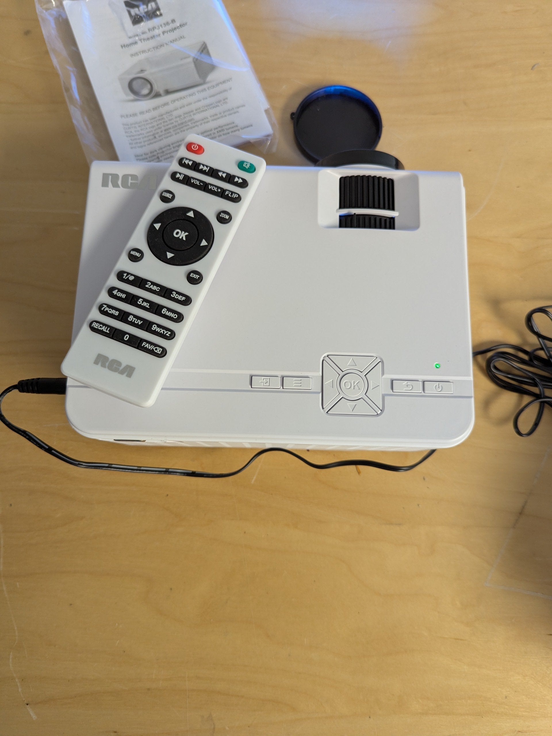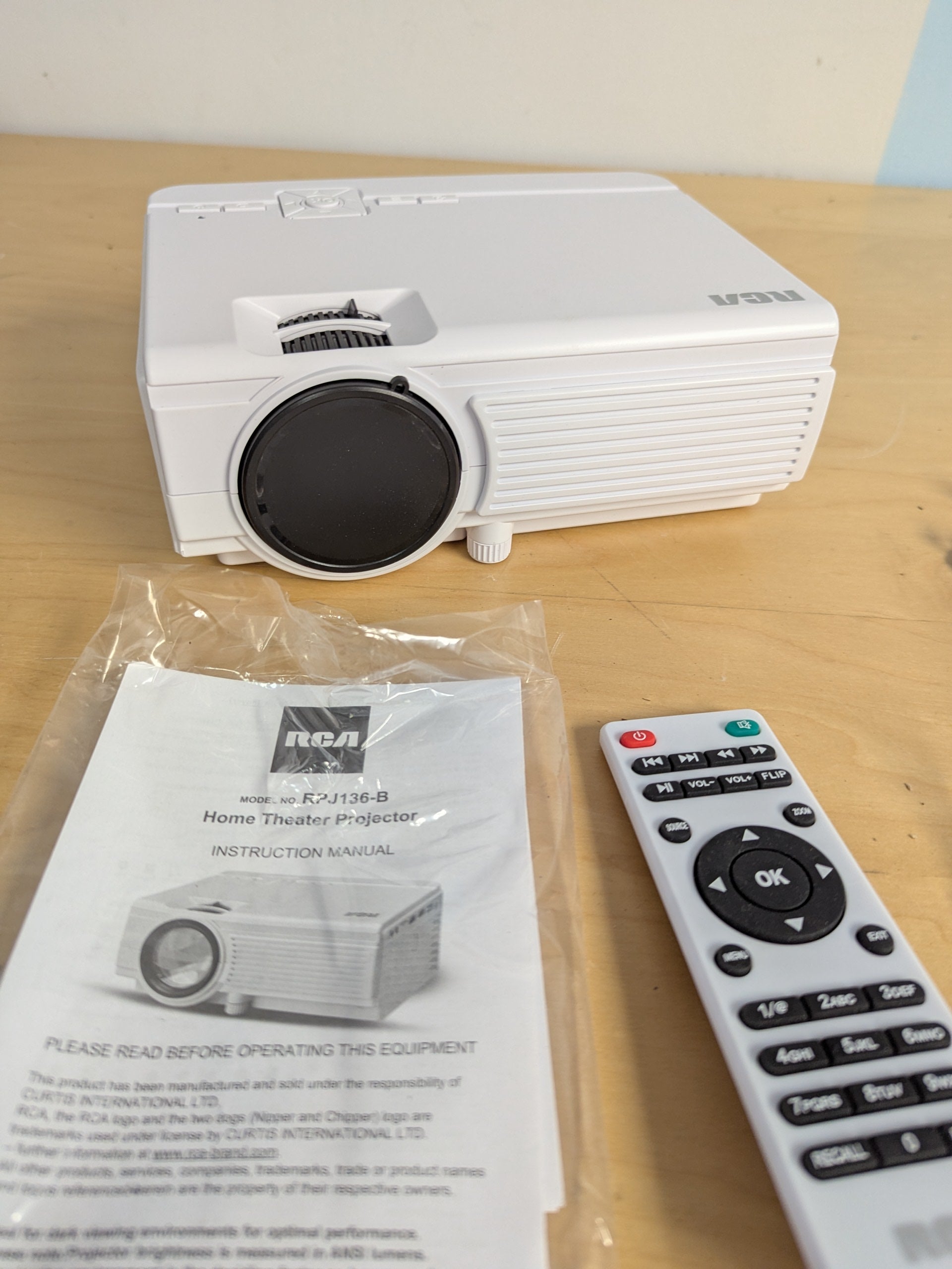Enjoy high-quality home entertainment with the RCA 480P LCD Home Theater Projector. Designed for clear, bright visuals in a compact form factor, this projector delivers an immersive viewing experience for movies, games, and more.