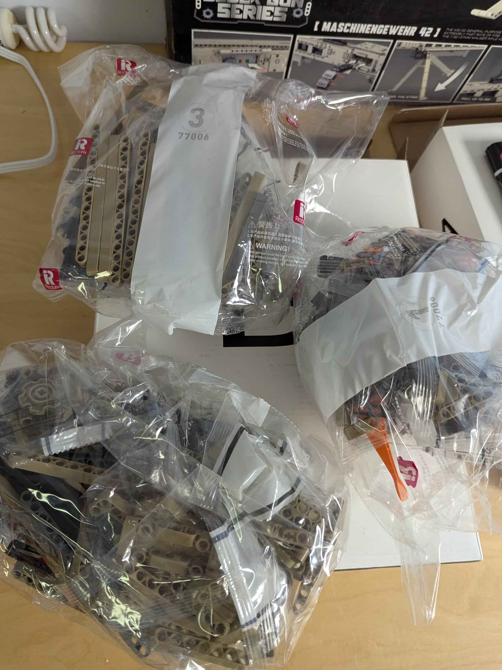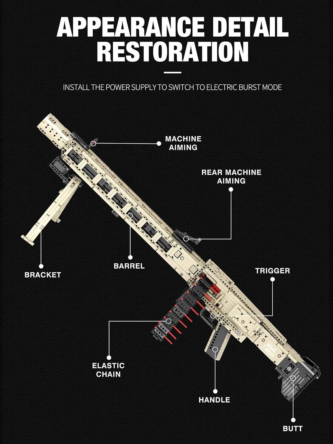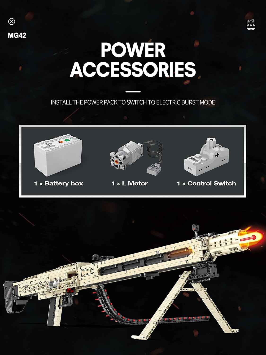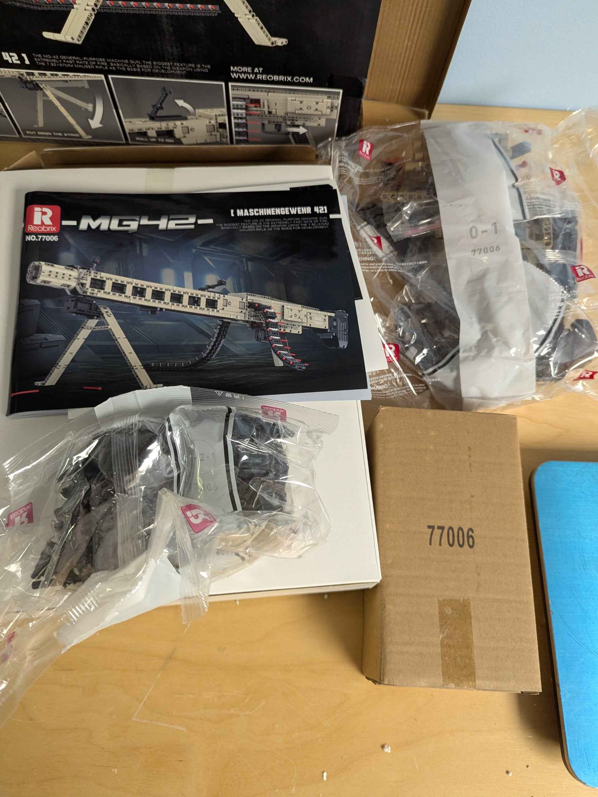 Reobrix 77006 Technic MG42 Building Blocks Set is a meticulously crafted 1886-piece model kit designed for military enthusiasts and construction lovers. Made with precision-cast components that are free of burrs, the set ensures a comfortable and precise building experience. The detailed design includes realistic features like butt stocks, magazines, triggers, and grips, bringing an authentic look to the final assembled model.