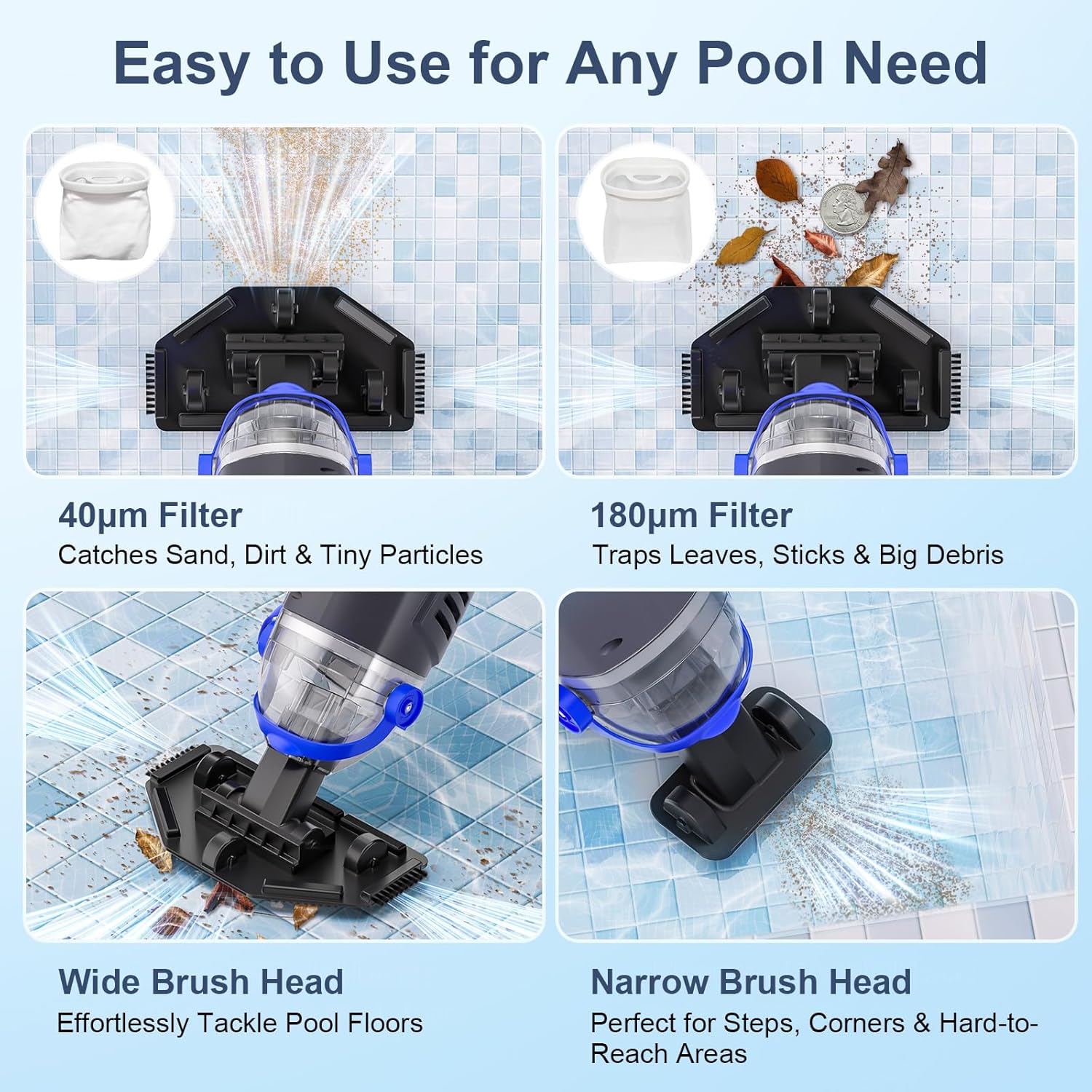 🔗 Perfect for: Pool owners looking for a reliable, cordless cleaning solution that combines power and convenience.