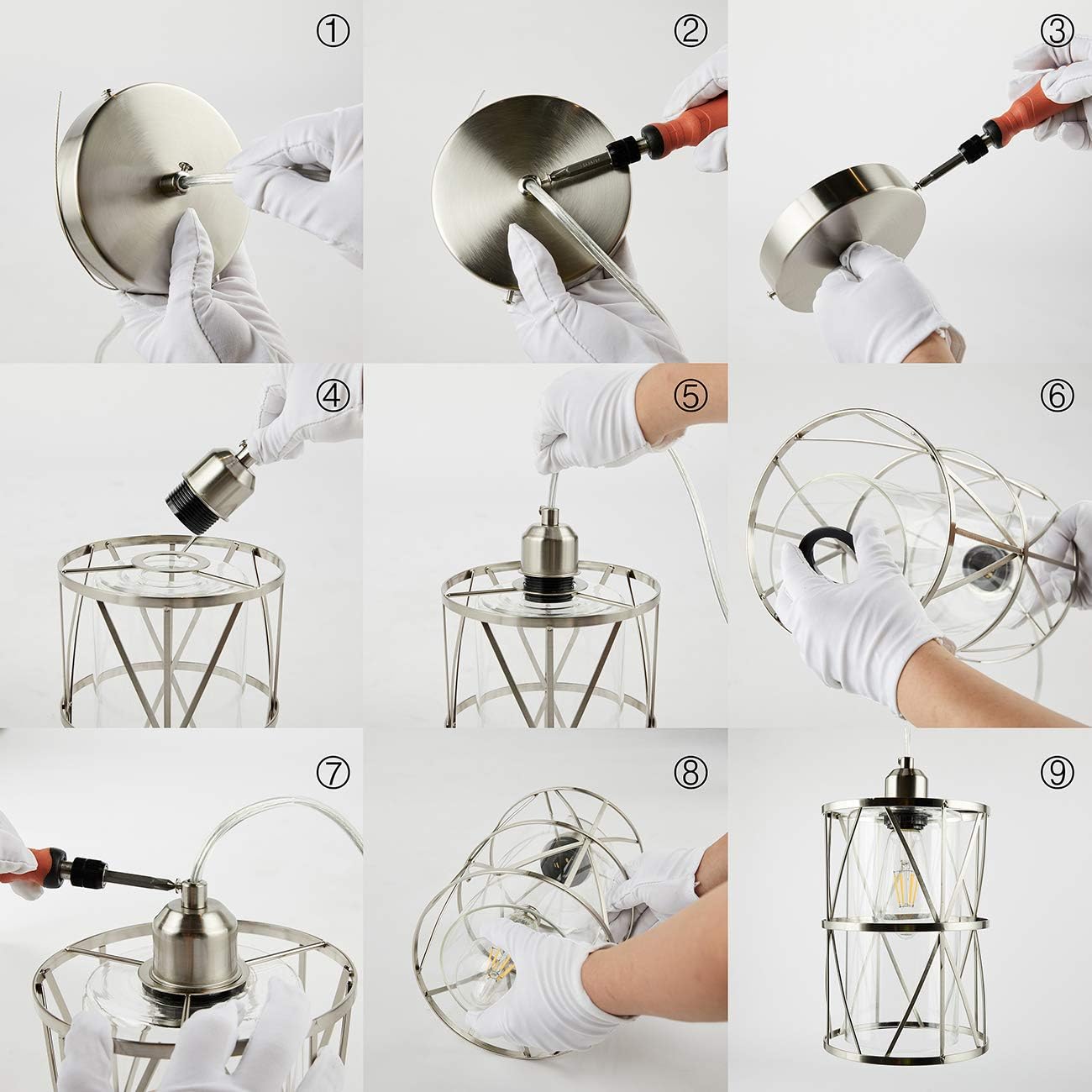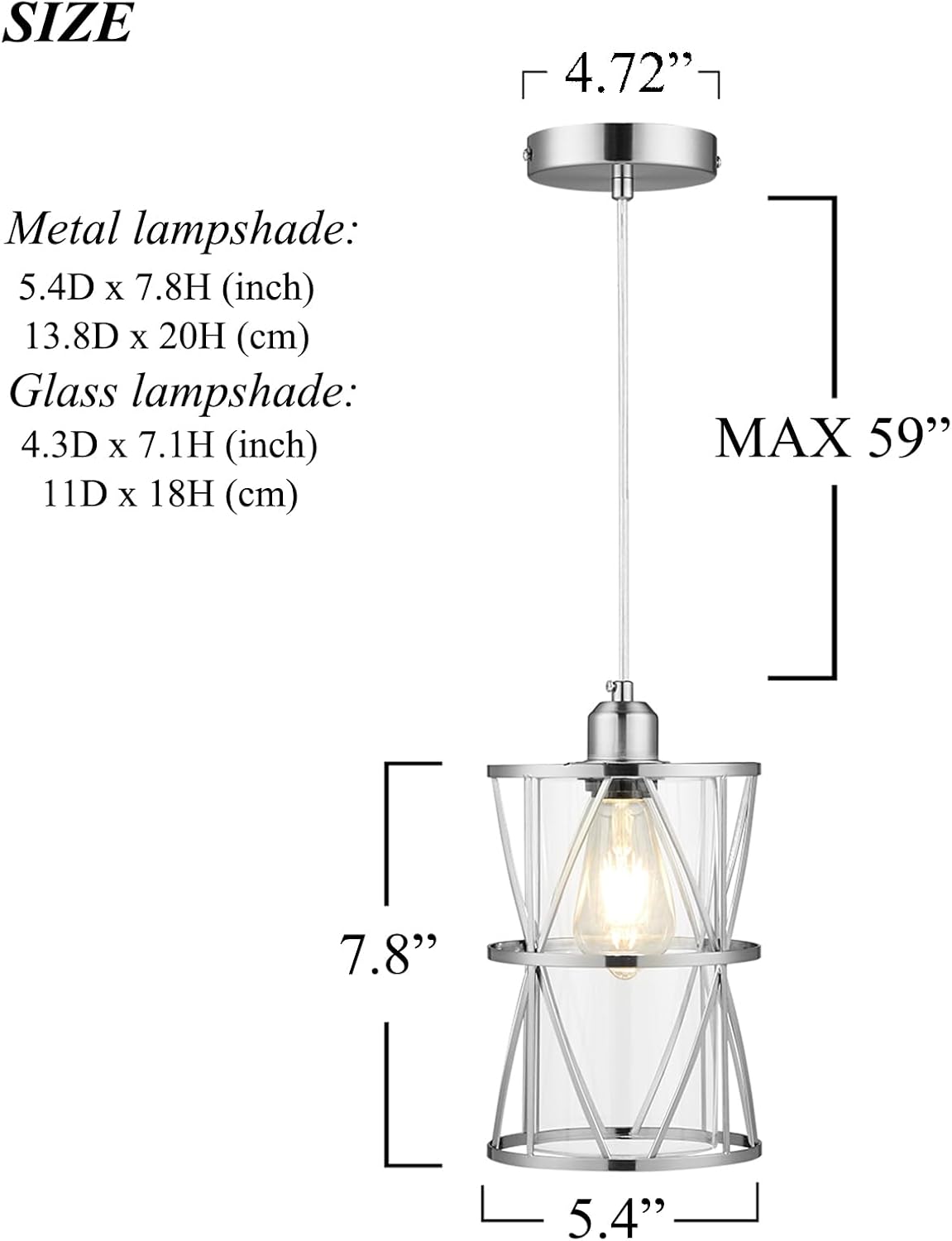 SHENGQINGTOP Modern Mini Pendant Light with Clear Glass, Brushed Nickel Transiti