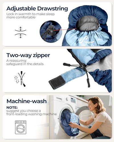 ✅ Versatile 3-Season Use: Designed for spring, summer, fall, and winter with a comfort temperature range of 50–80°F (10–25°C), ideal for camping, hiking, backpacking, and outdoor travel