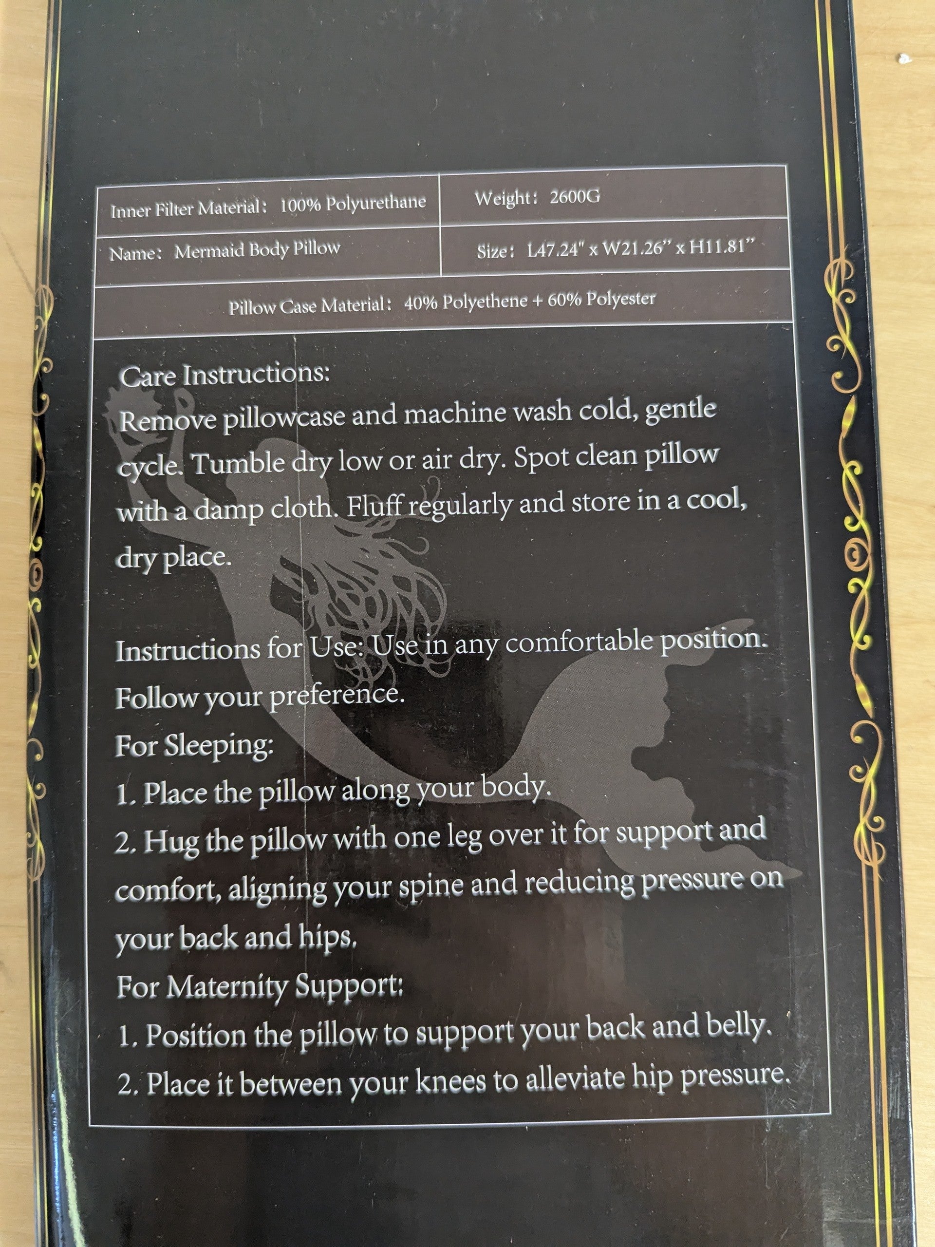 • Size: 40" x 12" (Mermaid Body Pillow)
