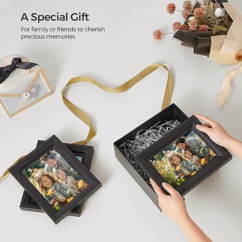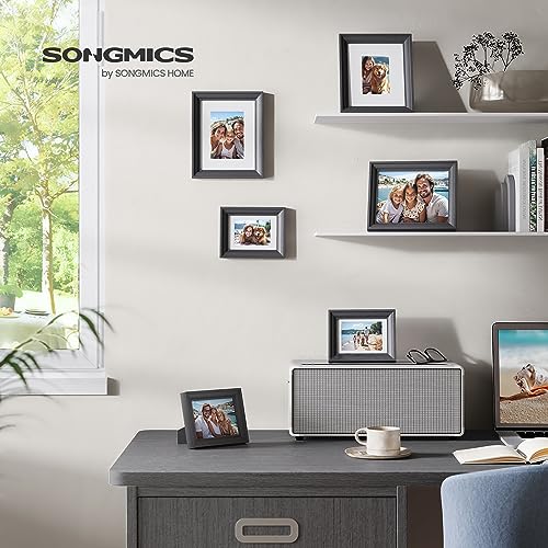 Create a stunning display with the SONGMICS 5x7 Picture Frames Set of 3. Each frame is designed to fit full-size 5x7 photos and includes two mats that can also accommodate 4x6 and 3.5x5 pictures, offering versatile arrangement options for your cherished memories.