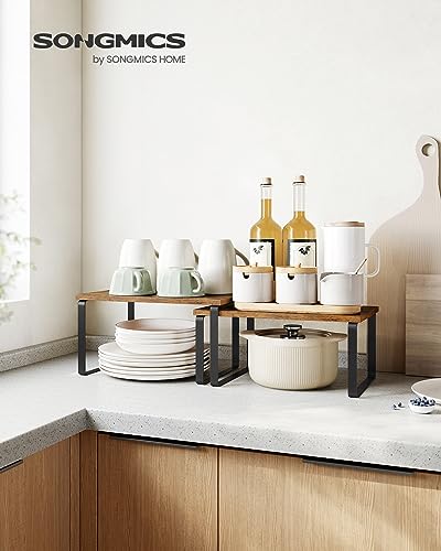 SONGMICS Cabinet Organizer Shelf, Set of 2 Kitchen Counter Shelves, Kitchen Stor
