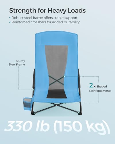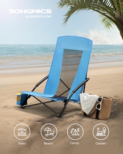 Enjoy ultimate comfort and convenience with the SONGMICS Portable Beach Chair. Standing 5.5" taller than average folding chairs, it offers superior back support for all-day relaxation. The high backrest is complemented by padded armrests that cradle your arms, while a built-in cup holder keeps your drink within reach.