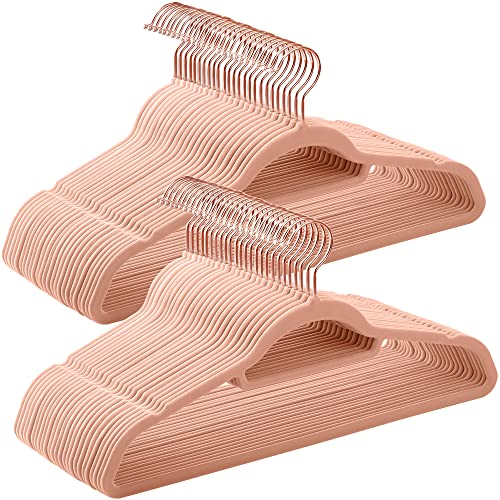 SONGMICS Velvet Hangers, Set of 50 Clothes Hanger with Rose Gold Swivel Hook, No