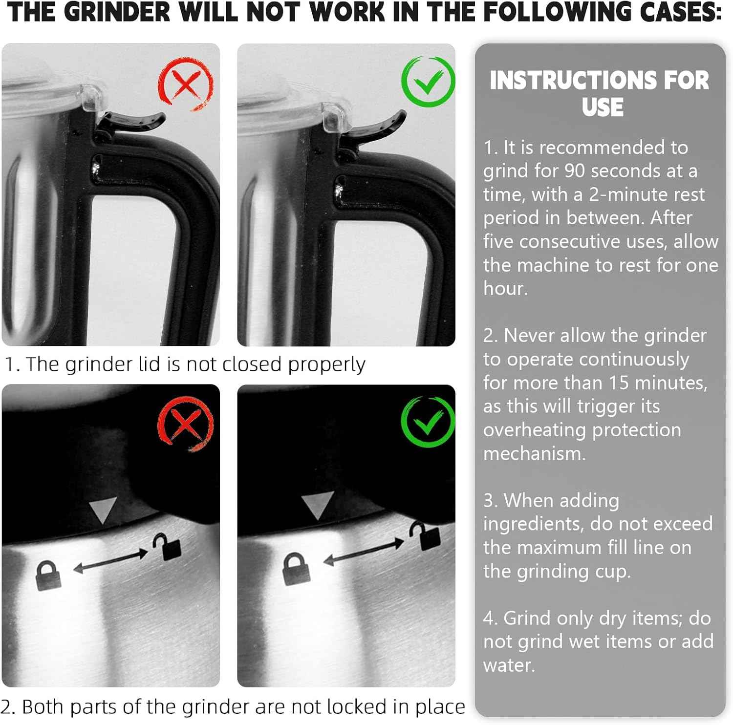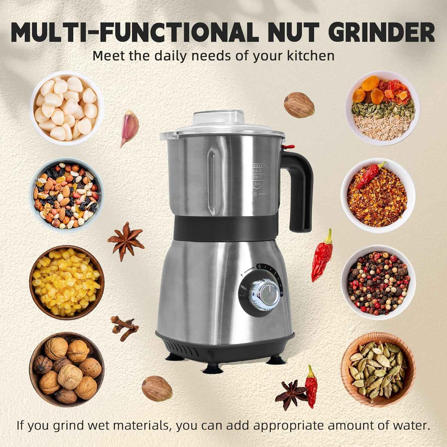 ✅ High-Power Performance: Equipped with a 500W motor, this electric spice grinder delivers efficient grinding for coffee beans, grains, nuts, herbs, and even wet ingredients like garlic and ginger