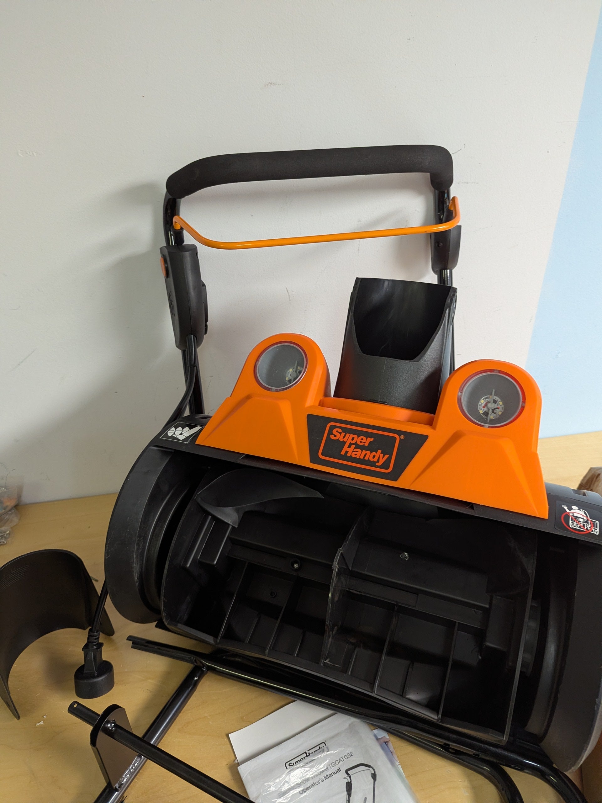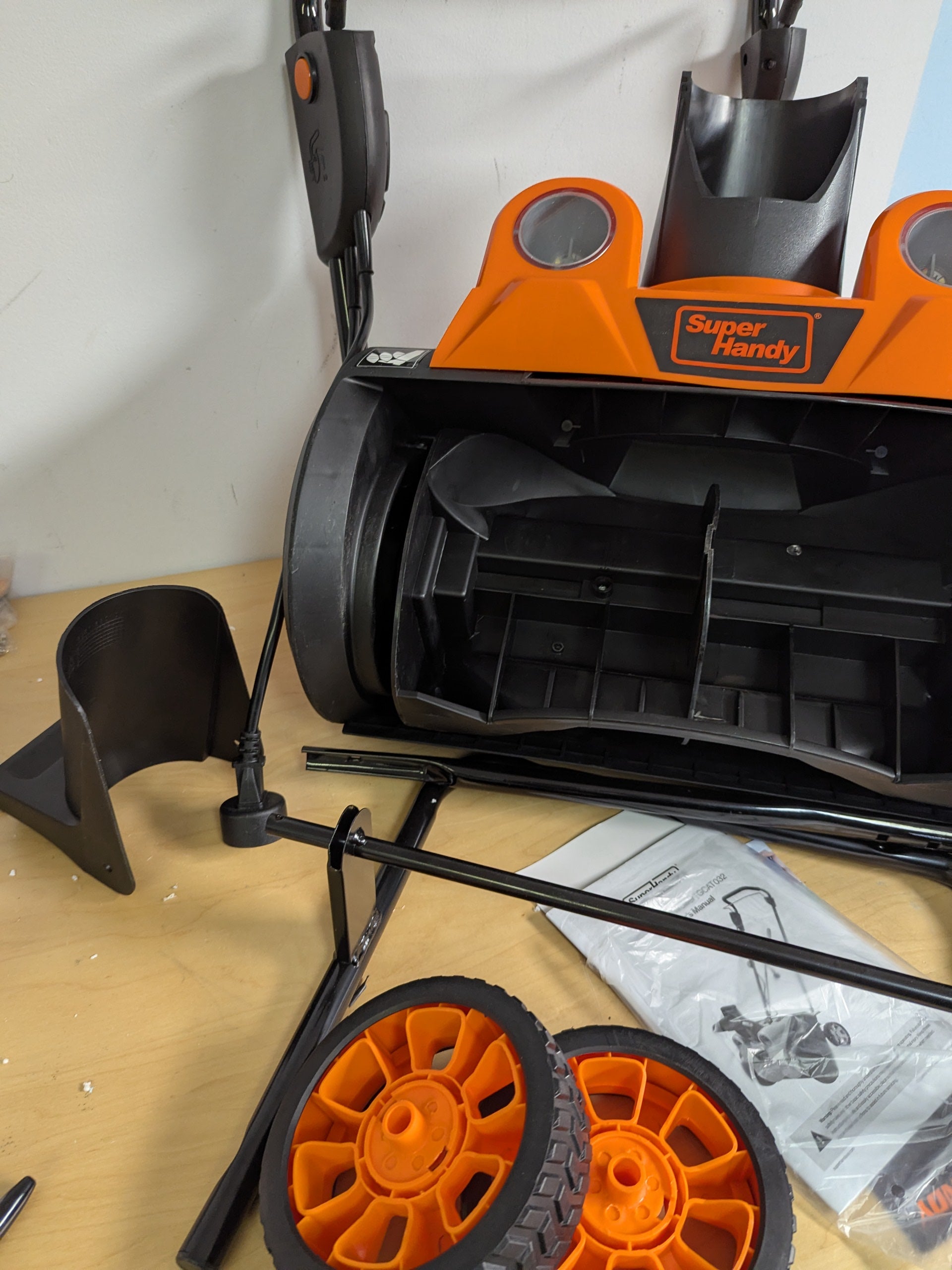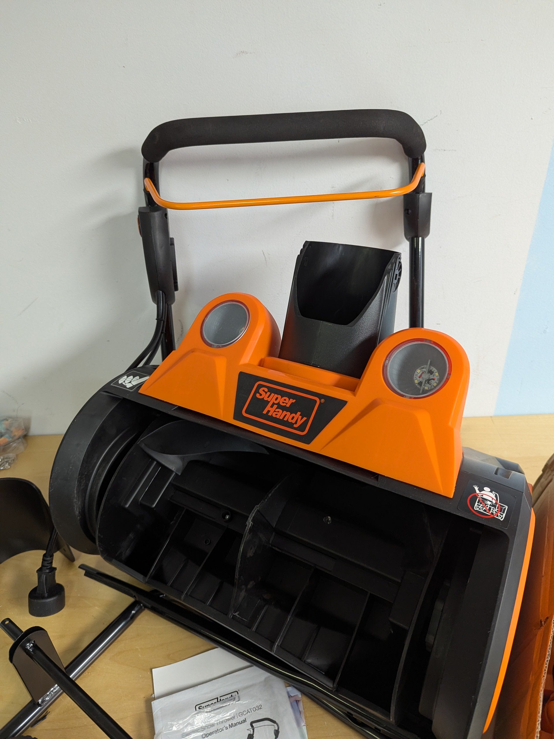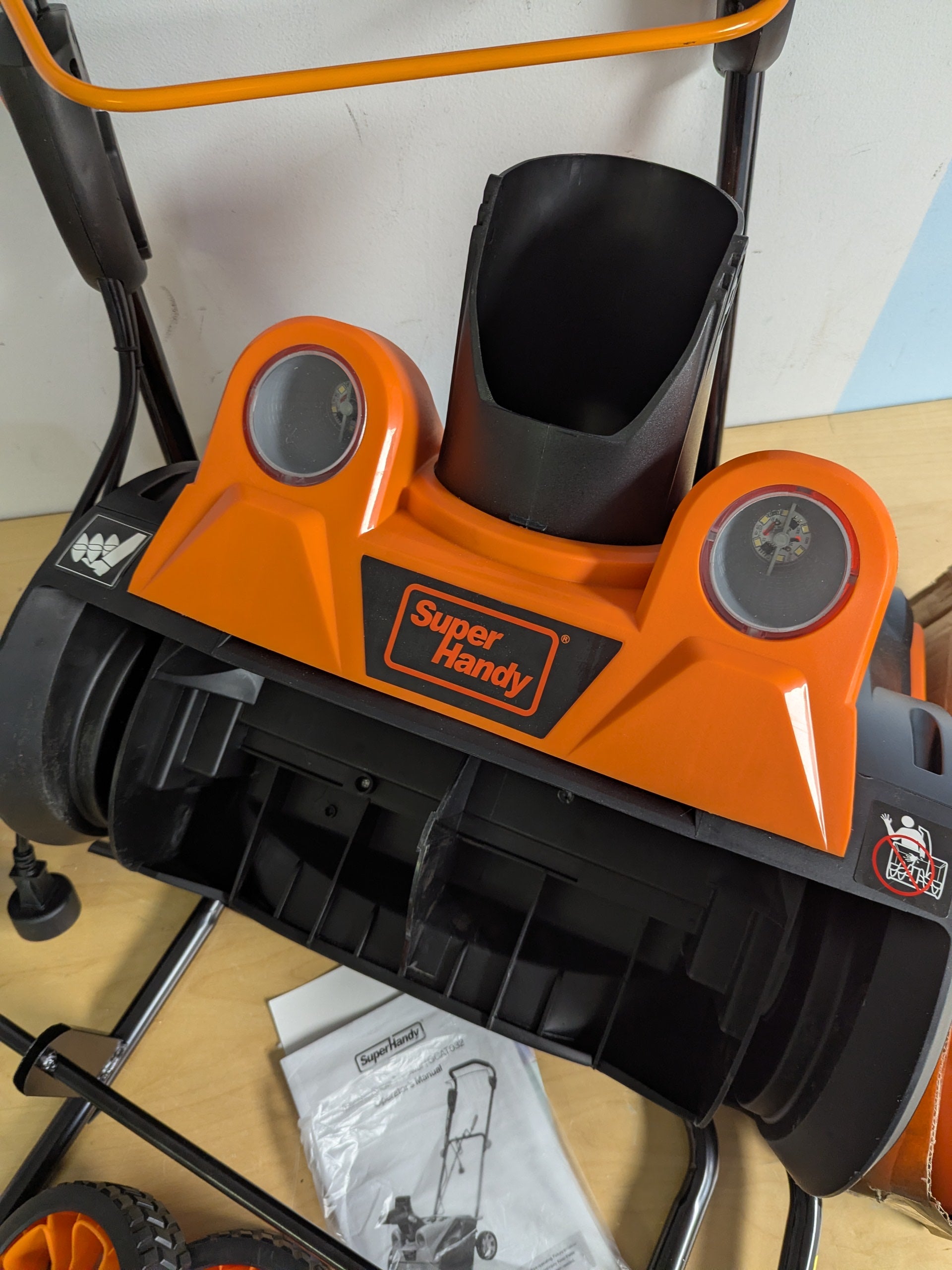 Clear snow efficiently with the SuperHandy Electric Snow Thrower Walk-Behind Blower. This powerful corded snow blower is designed for both residential and commercial use, offering a reliable solution for clearing driveways, walkways, and yards. Featuring a 120VAC 15Amp brushless motor, it delivers a 18-inch wide x 10-inch deep clearing path and a 25-foot throwing distance, making it ideal for quick and effective snow removal.