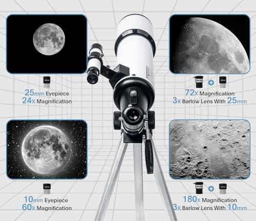 ✅ Versatile Magnification: 24X to 180X with included Barlow lens for detailed celestial observation