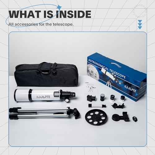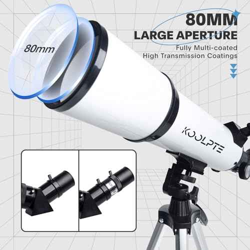 Experience crystal-clear celestial views with the Koolpte 80mm Aperture Refracting Telescope. Featuring an 80mm objective lens and a 600mm focal length (f/6.7), this telescope captures more light for brighter, sharper images. Fully multi-coated optics enhance transmission, ensuring exceptional brightness and clarity across all viewing conditions.