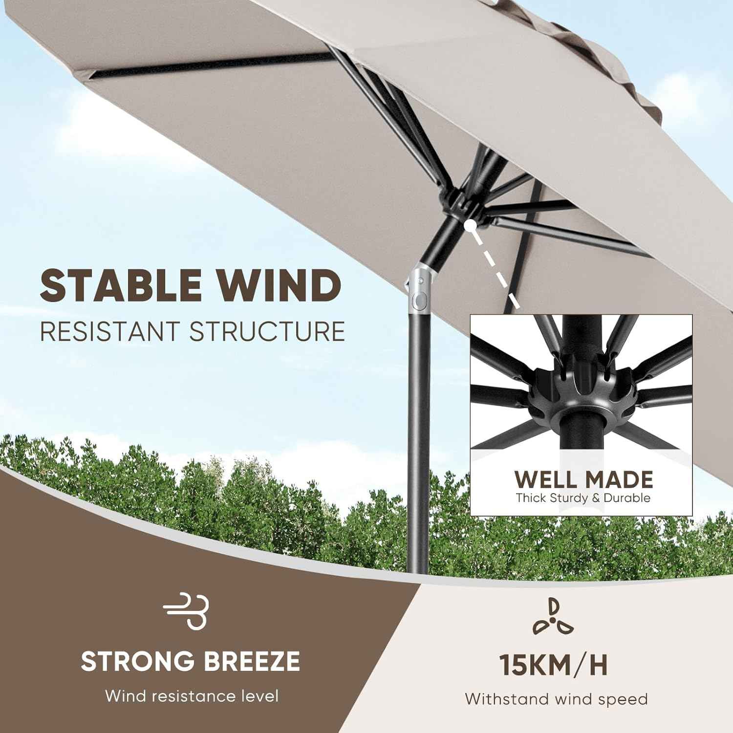 • Pole & Ribs: Aluminum/steel mix (durable, rust-resistant)