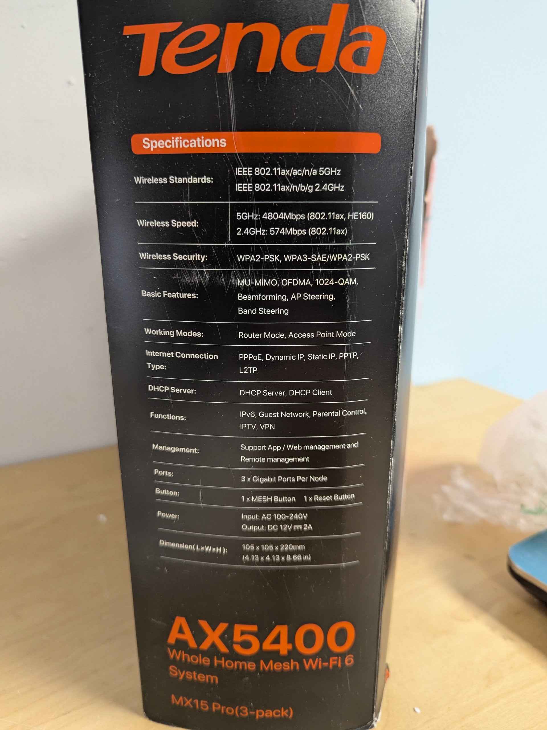• Product Name: Tenda MX15 Pro AX5400 Dual-Band Mesh WiFi 6 System (3-Pack)