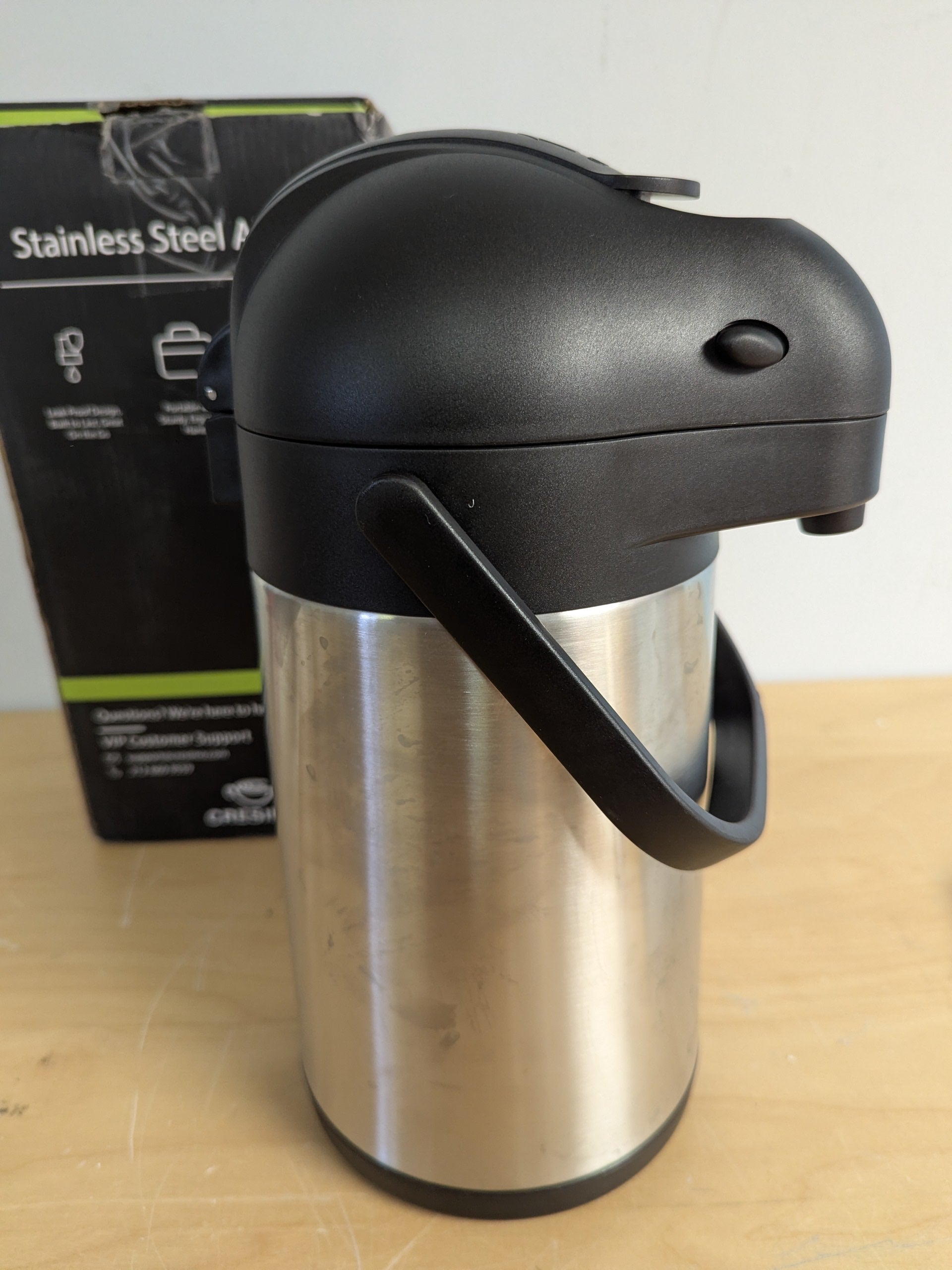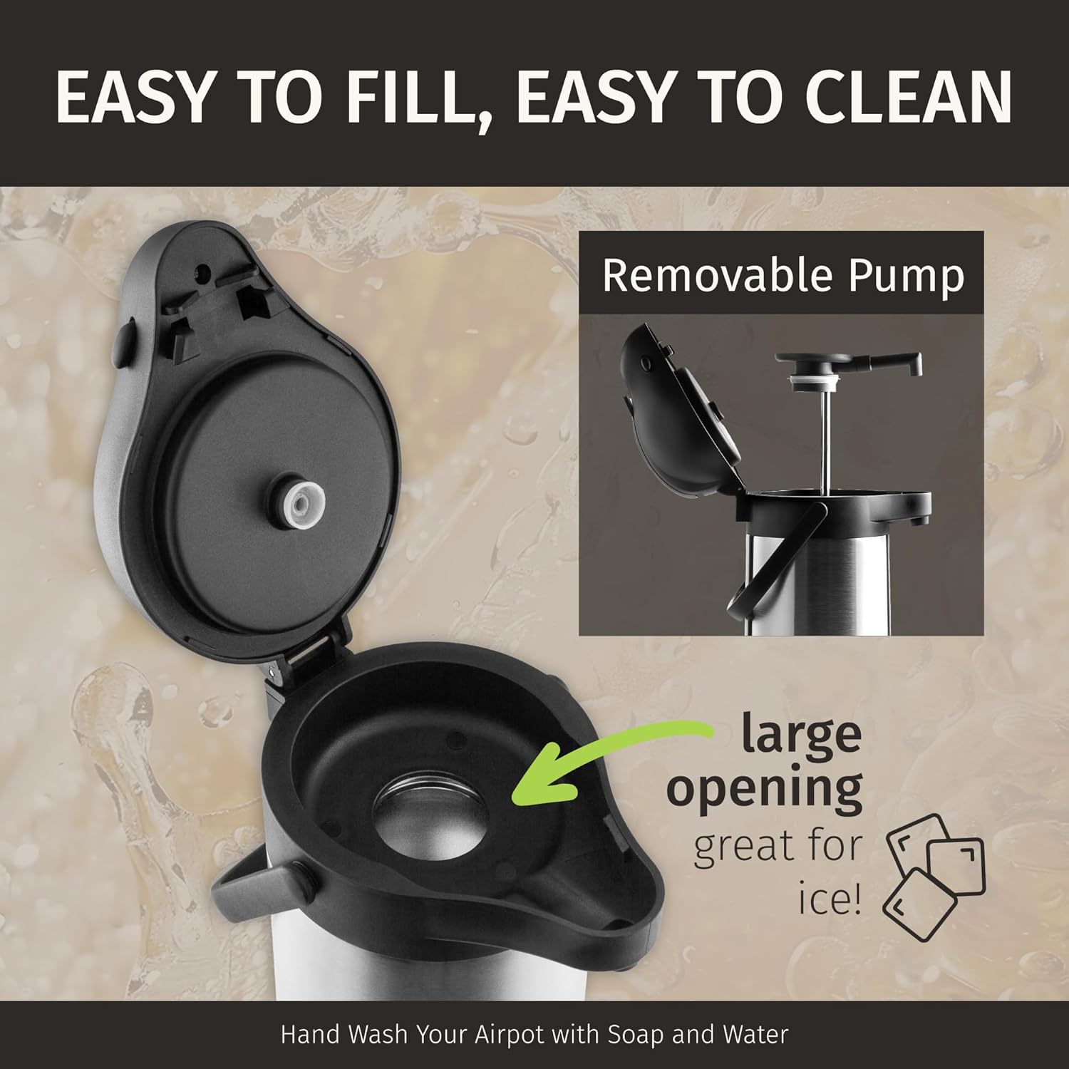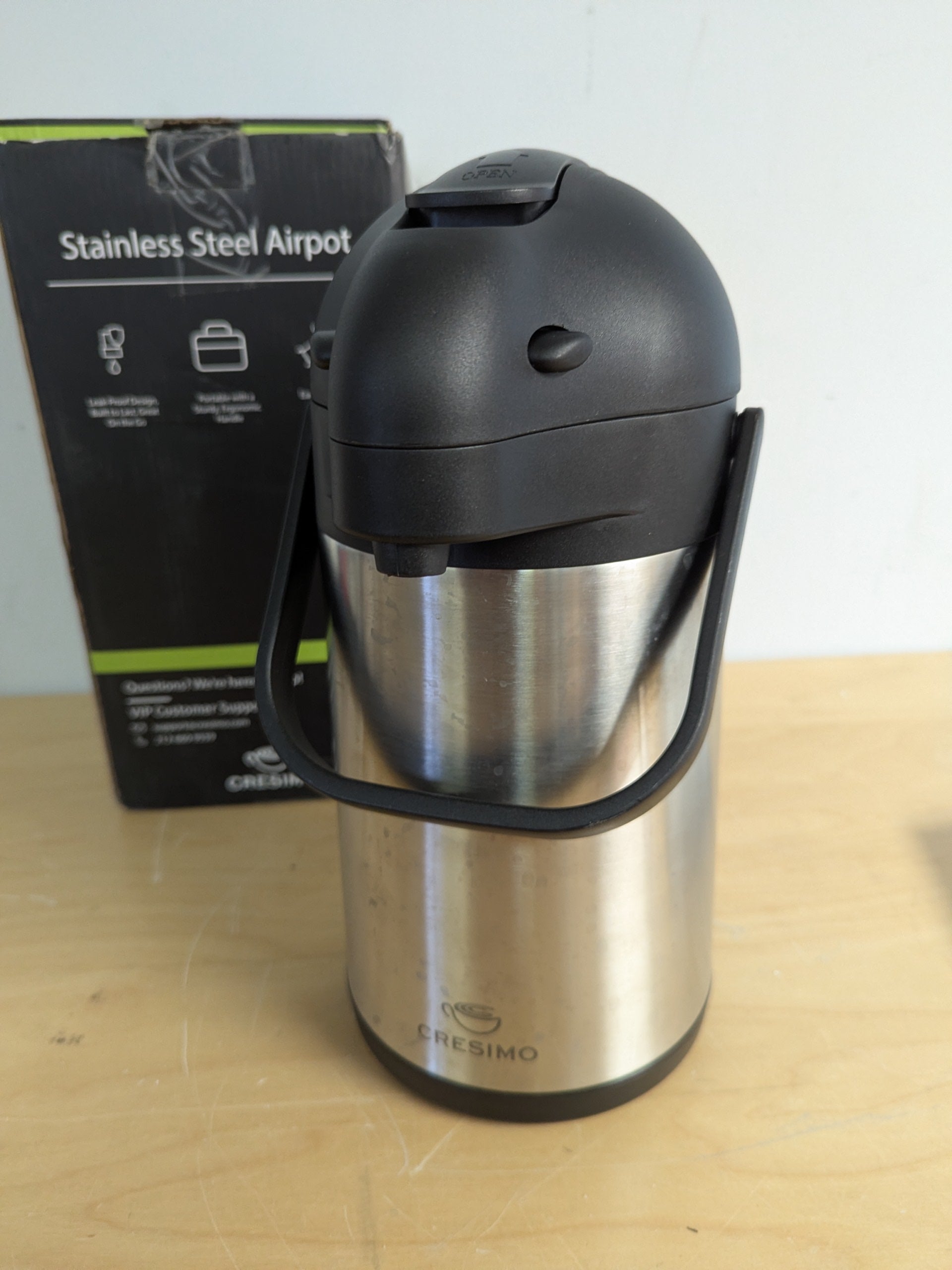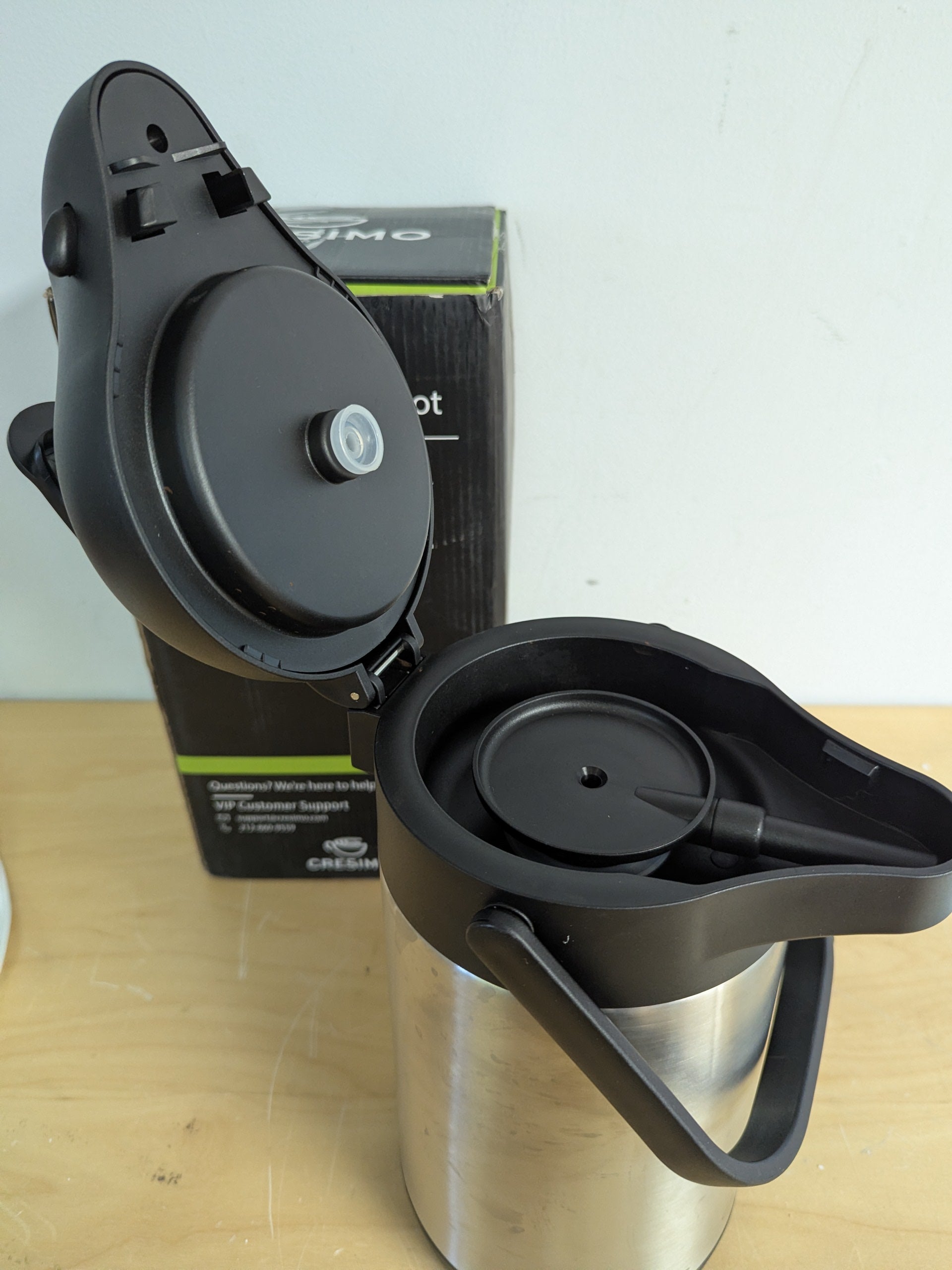 Keep your coffee hot for hours with the CRESIMO Thermal Coffee Carafe. This 74 oz (2.2 L) stainless steel coffee airpot is built for durability and performance, keeping your favorite drinks hot for up to 12 hours and cold for up to 24 hours thanks to its vacuum insulation technology.