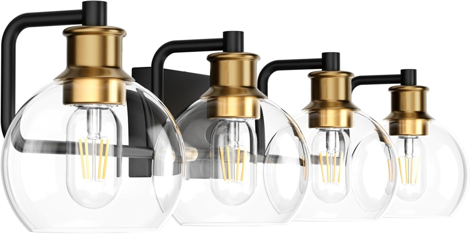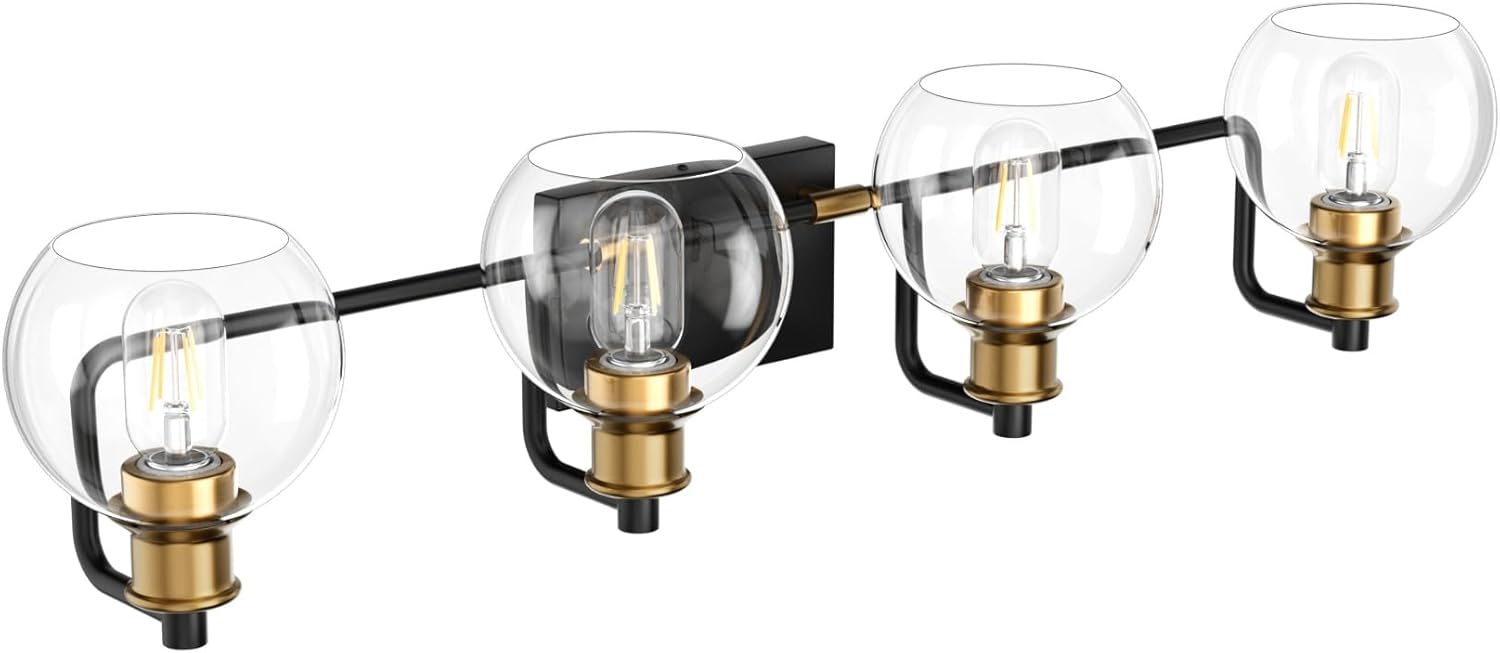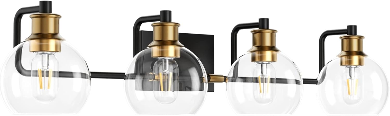 ✅ Timeless Vintage & Industrial Design: Features a matte black finish with antique gold accents, combining vintage charm with industrial strength. The clear glass globes enhance light output and add a refined, modern chic touch to any space.