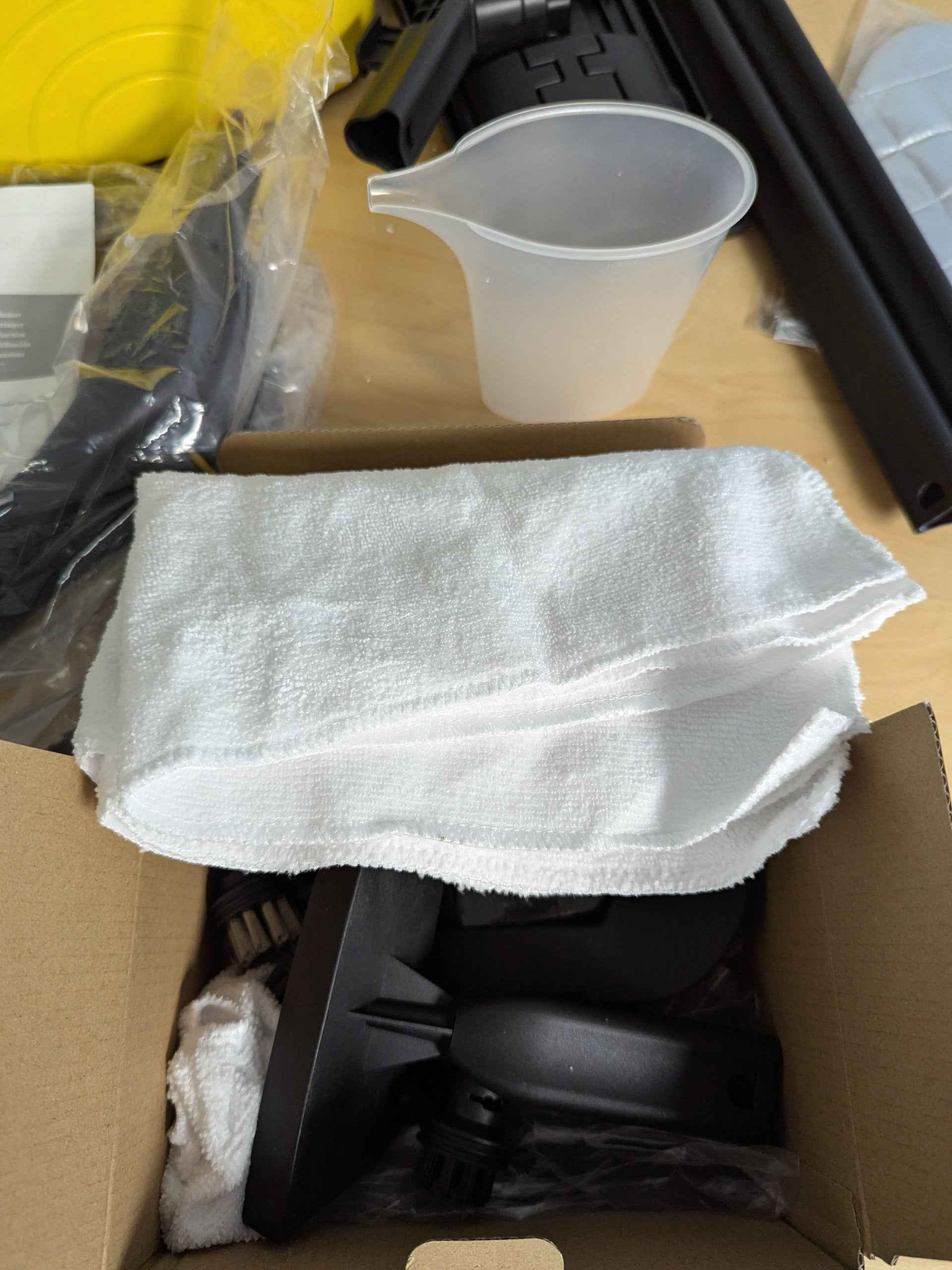 • Included Components: 4 x Nylon Utility, 2 x Brass Utility, 3 x Ironing Towel, 2 x Microfiber Mop Pads, 2 x Extension Tube, 1 x Measuring Cup, 1 x Glove, 1 x Ironing Brush, 1 x Shoulder Strap, 1 x Glass Brush, 1 x Big Nozzle, 1 x Floor Brush, 1 x Carpet Glider
