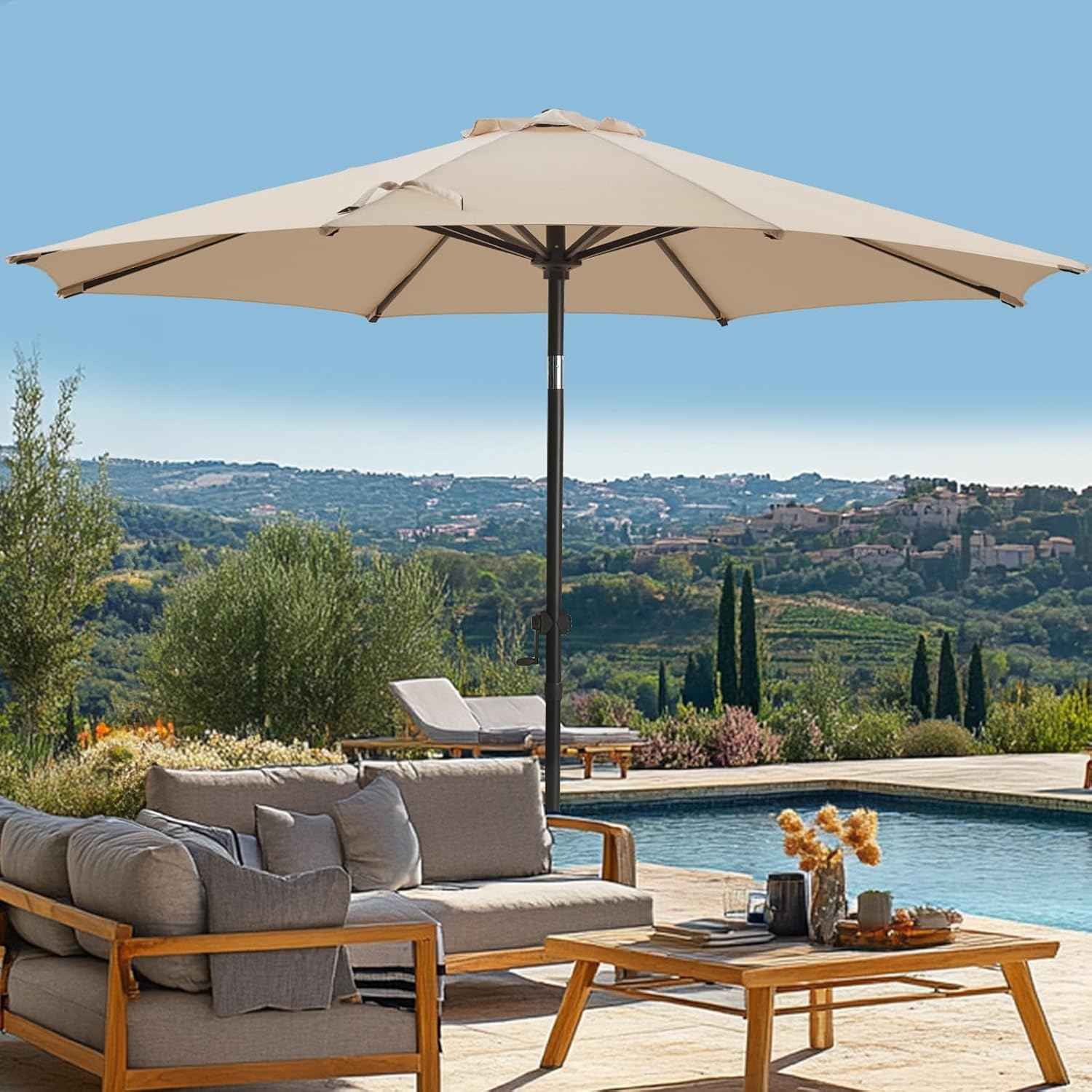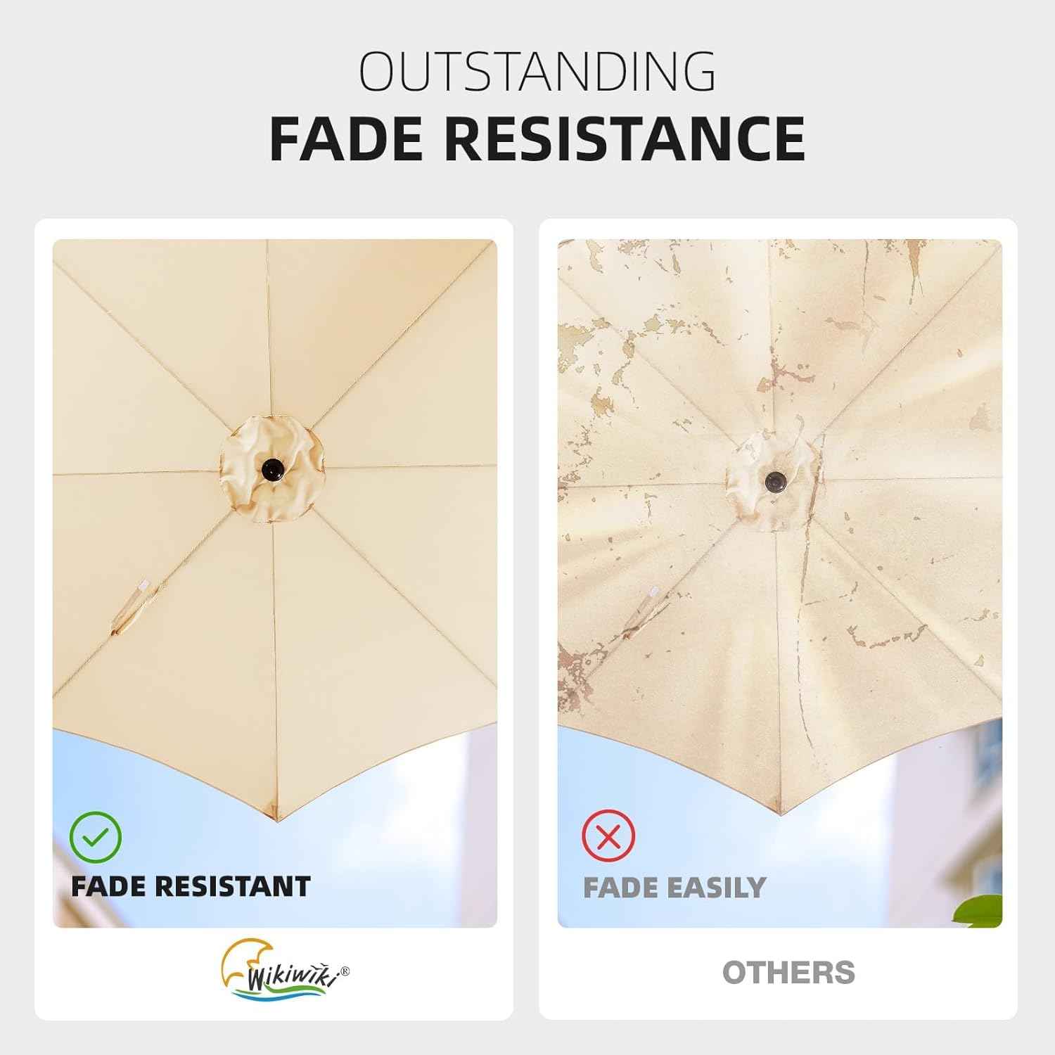 Enjoy ample shade for your outdoor gatherings with the wikiwiki 11 ft market umbrella. Featuring a fade-resistant recycled polyester canopy, sturdy powder-coated iron frame, and easy crank and tilt mechanisms, it's built to withstand daily use and shift with the sun.